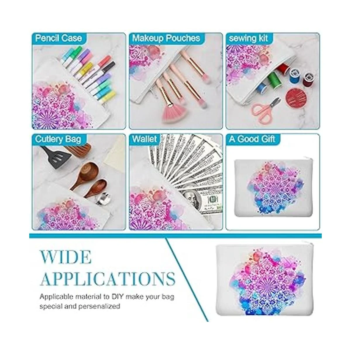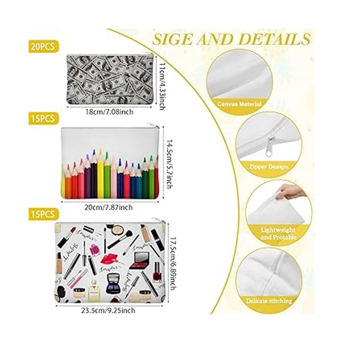 50 bolsas de cosméticos de lona en blanco de 3 tamaños, bolsas de maquillaje de sublimación, bolsa blanca para lápices de bricolaje, bolsas multiusos con cremallera, bolsa de transferencia de calor, bolsas para planchar para artículos de papelería, artículos de aseo personal, manualidades
