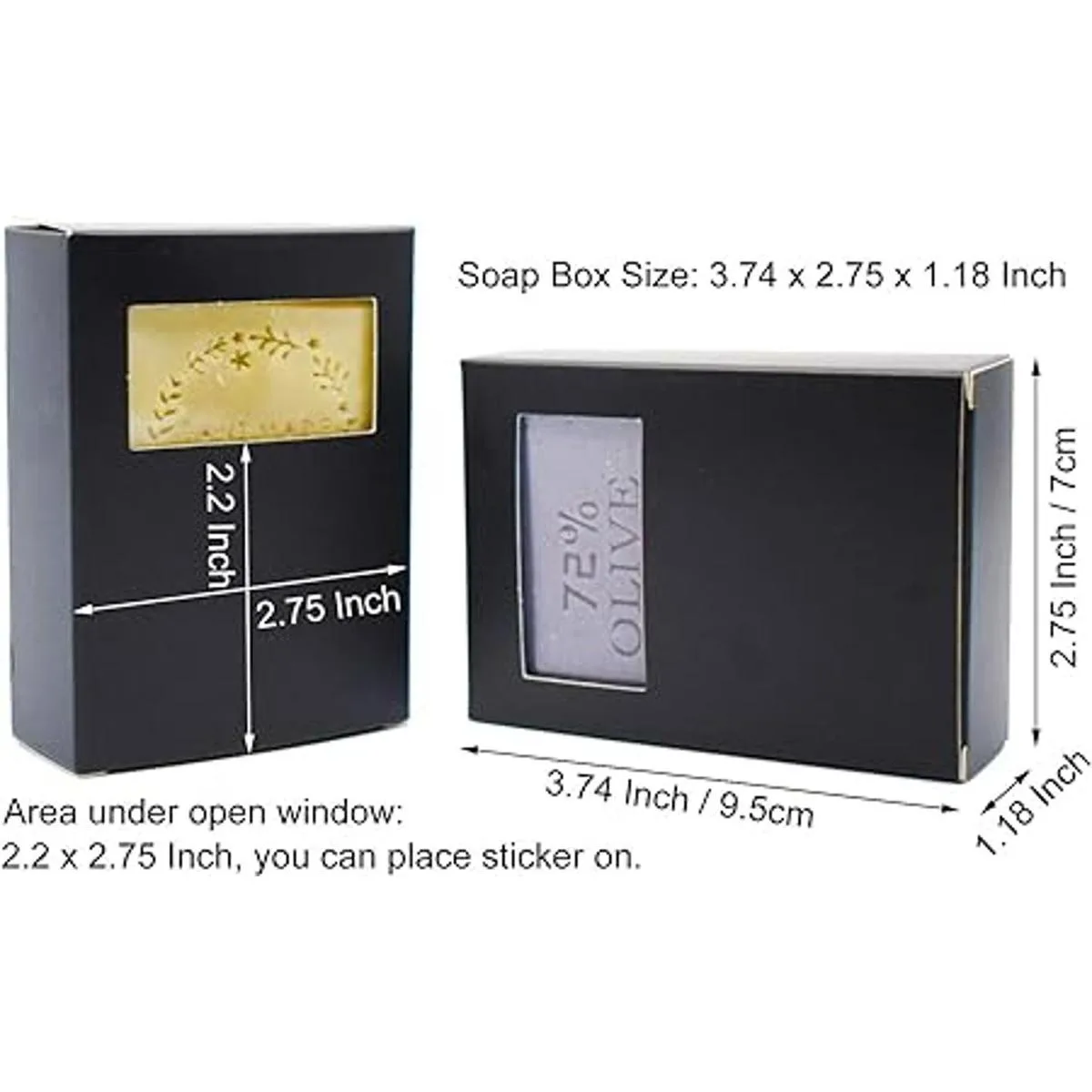50 cajas de embalaje de jabón negro para jabón casero, cajas de jabón de papel kraft con ventana abierta rectangular