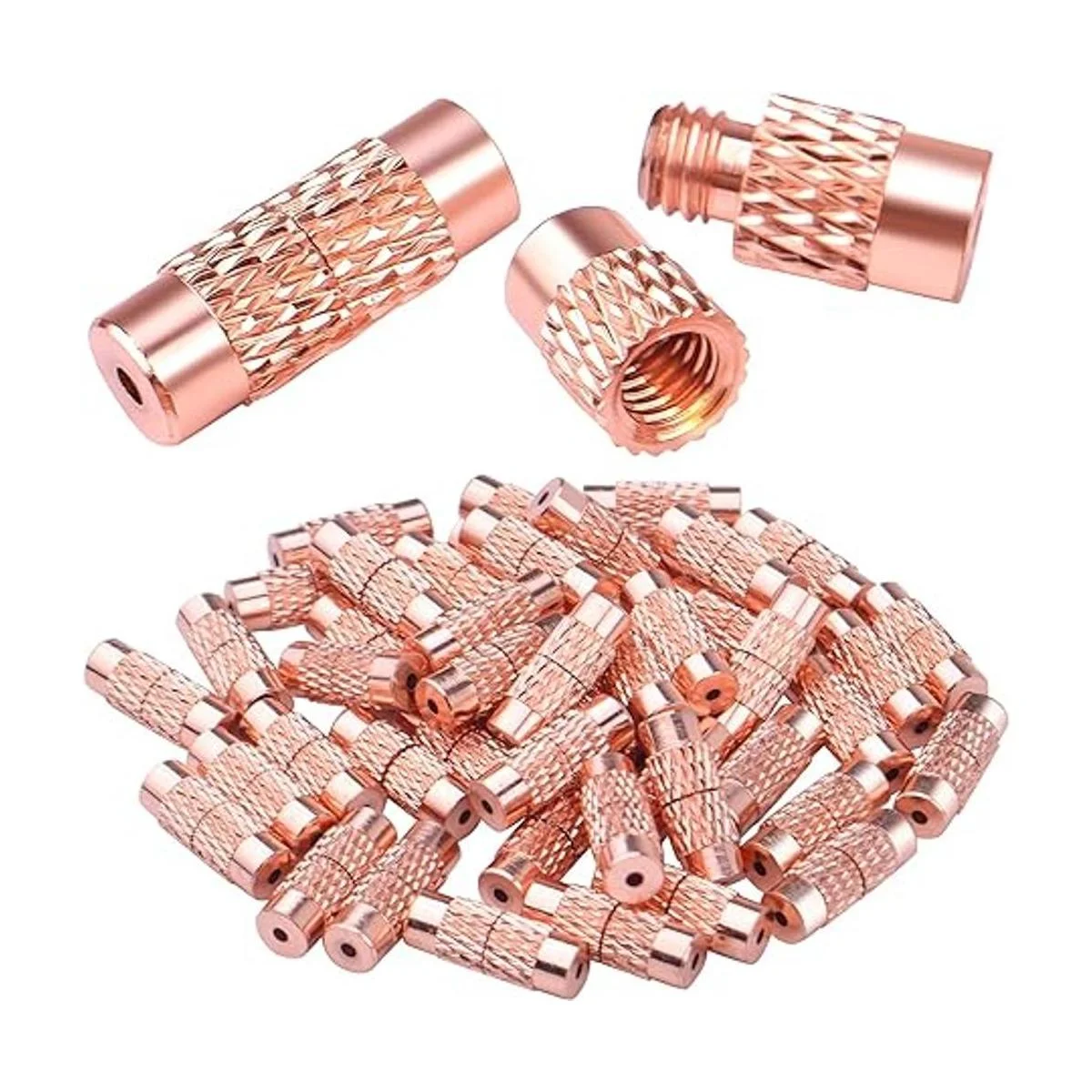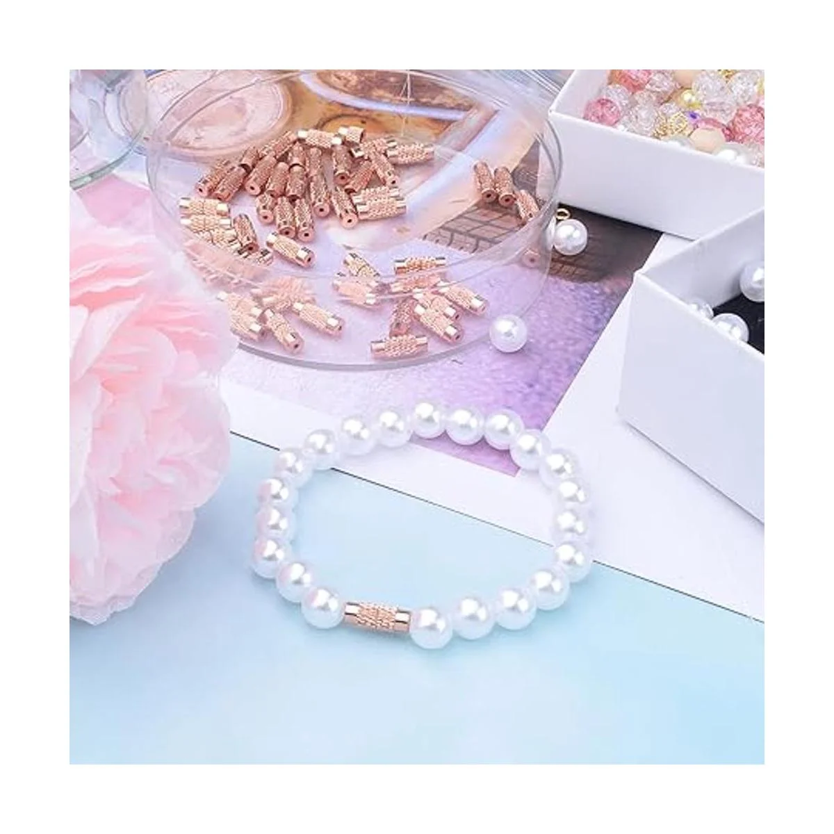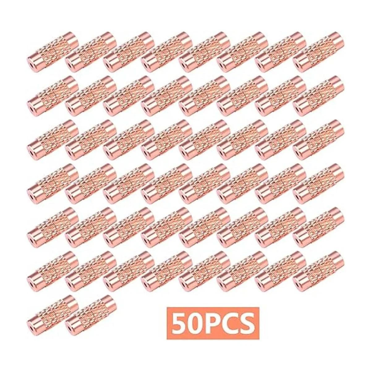 50 cierres de rosca de latón para sujetar tubo, tapas de extremo para pulseras, collares, llaveros artesanales, joyería, decoración hecha a mano, oro rosa, 0.445 in x 0.165 in