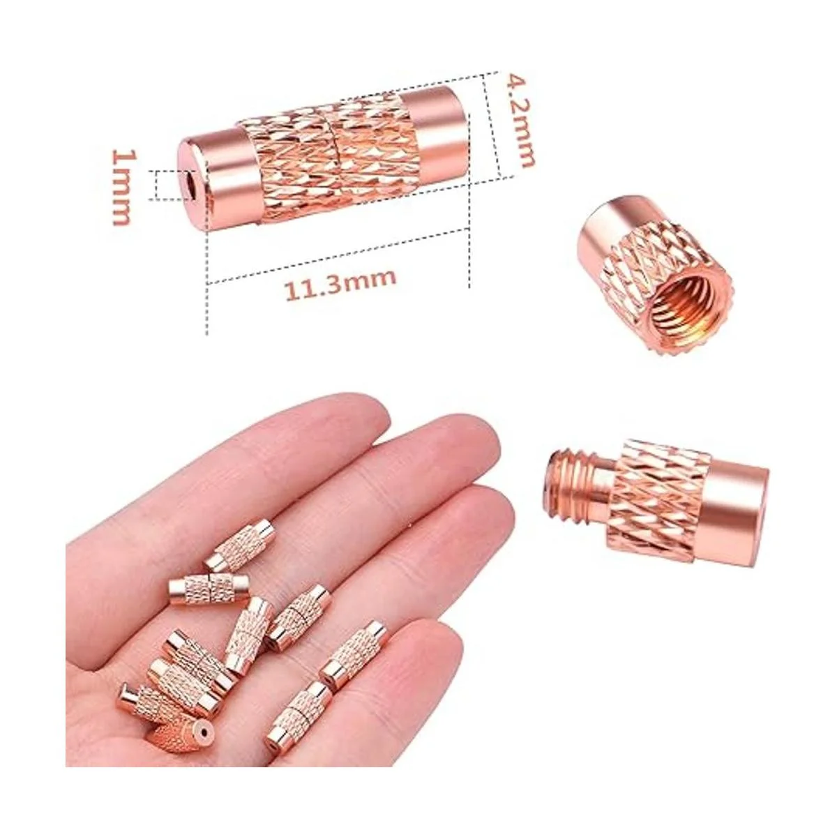 Tamaño adecuado: como se muestra en la imagen, los cierres de rosca son de aproximadamente 0.445 in de largo, 0.165 in de ancho, el mini agujero es de 0.039 in. Adecuado para hacer los objetos que deseas de acuerdo a tus necesidades