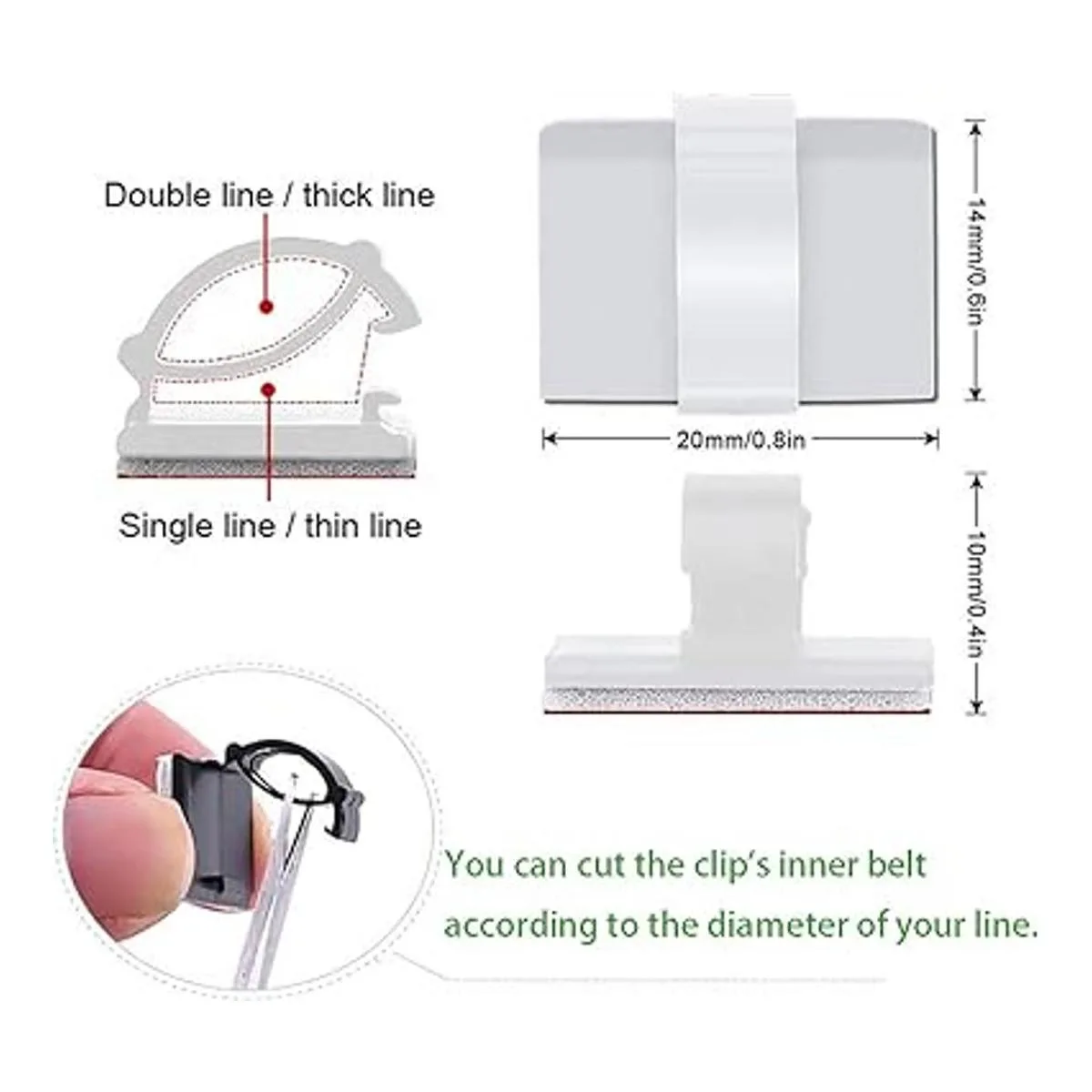 Tamaño: 0.8 x 0.6 x 0.4 in. Diámetro del cable aplicable: 0.000 0.197 in. Diseño interior recortable, apto para diferentes tamaños. Corta y obtén más espacio