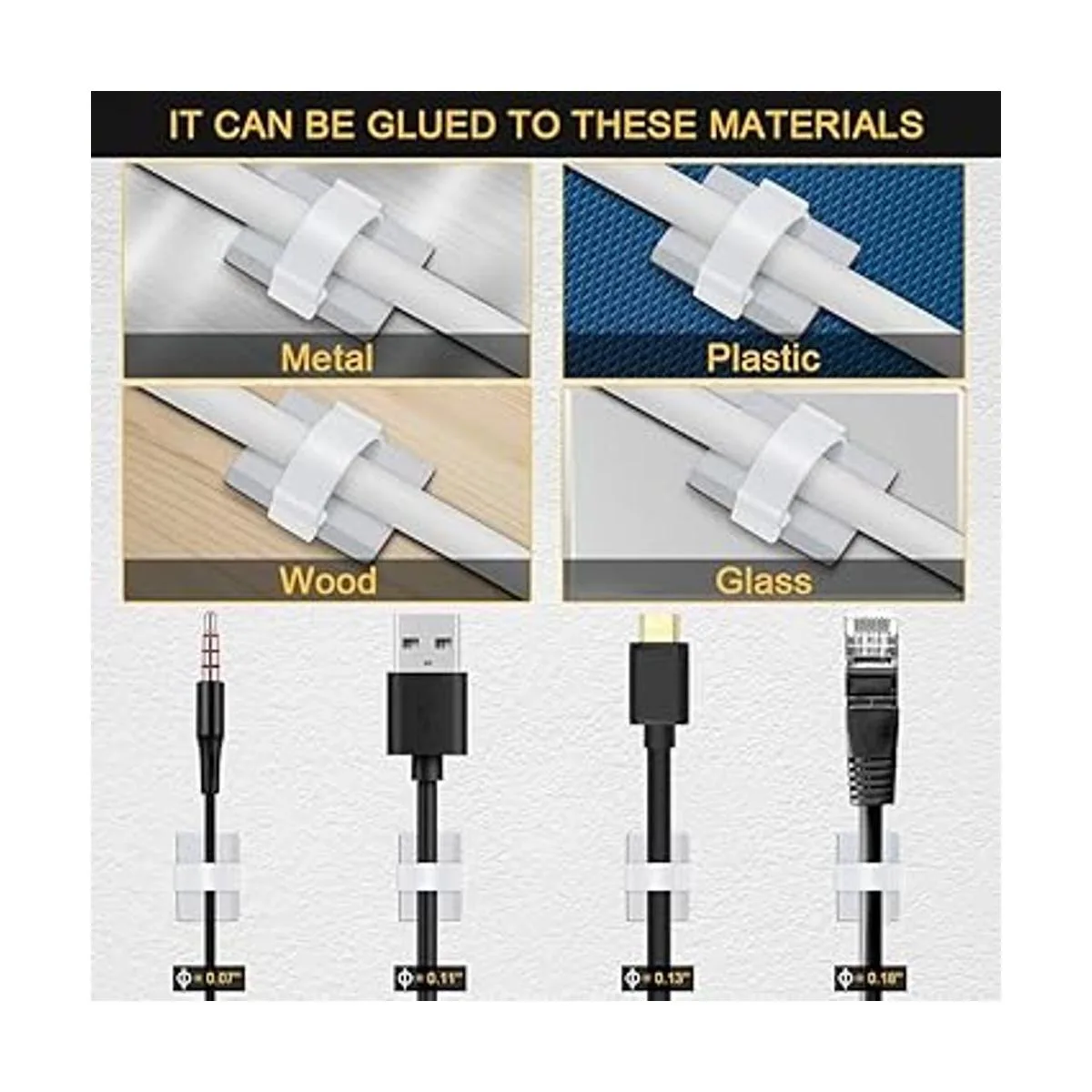Uso amplio Los clips de cable son útiles para organizar cables de computadora, cables USB, cables de TV, cables de luces de Navidad y pegar en la mayoría de superficies en el hogar, la oficina y el coche.
