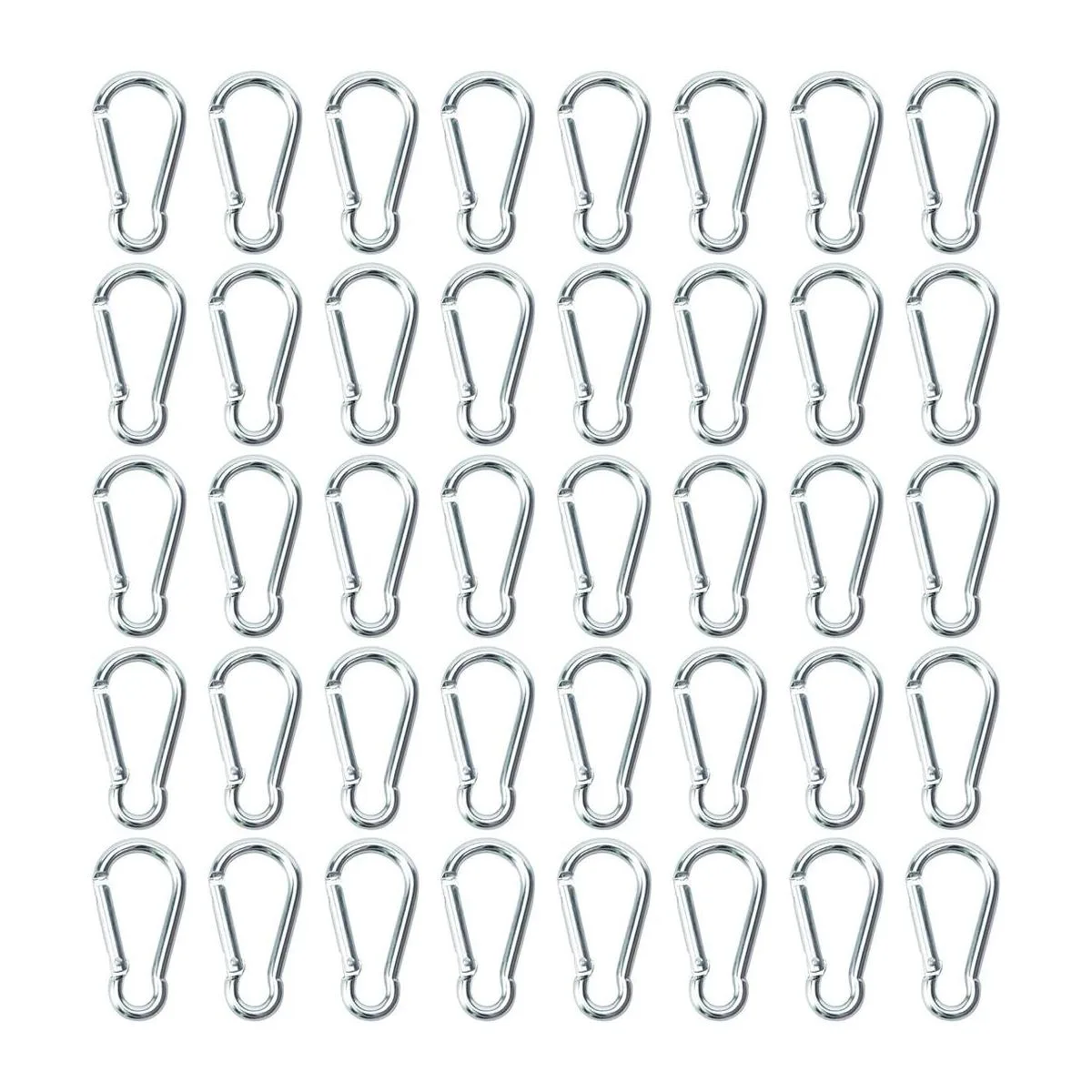 50 clips de mosquetón pequeños de aluminio mini mosquetón clip llavero a granel gancho paquete de mosquetón en forma de D llavero para senderismo en el hogar, plata