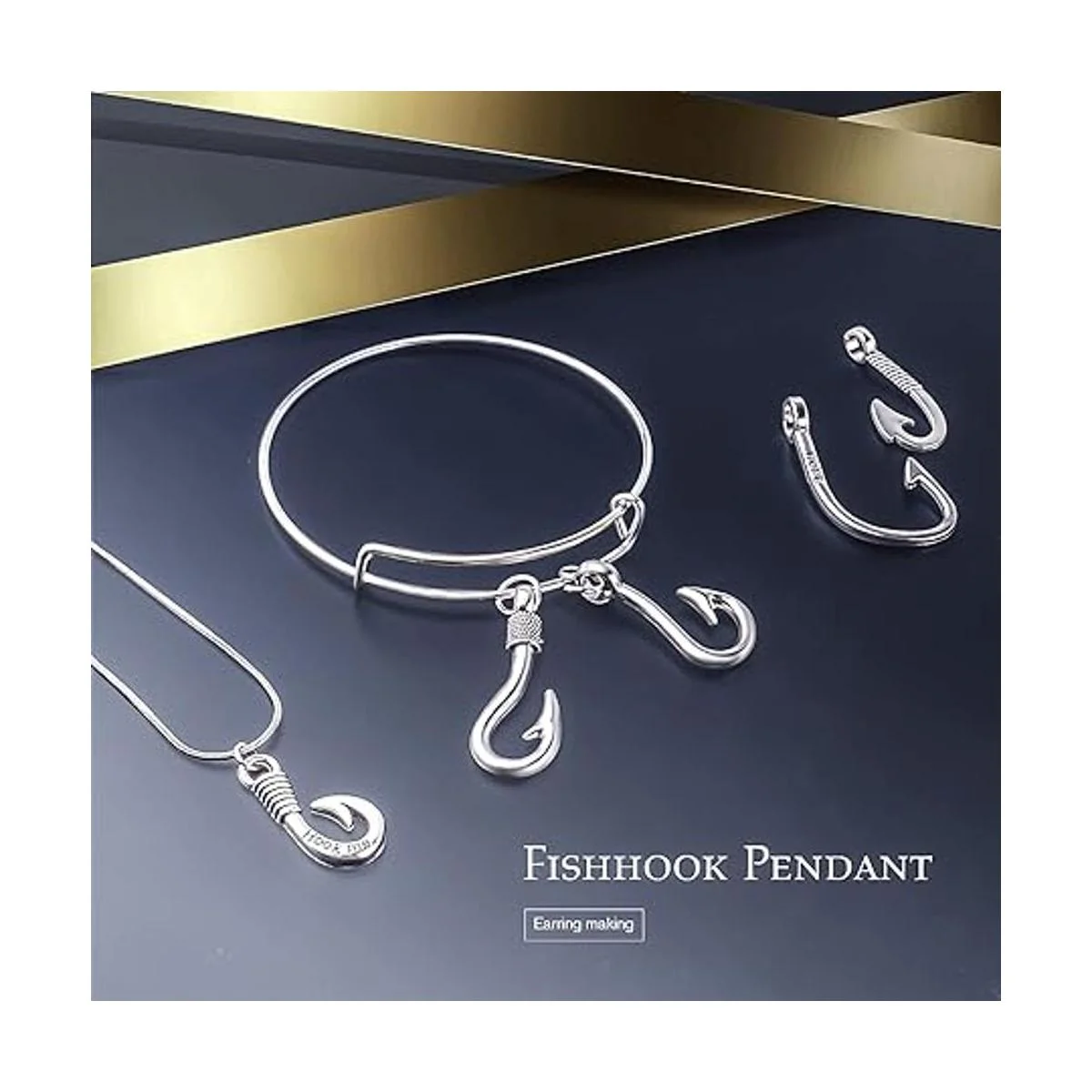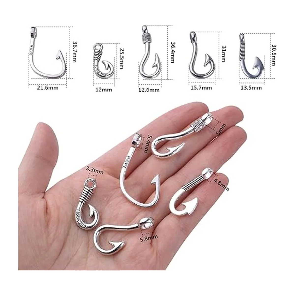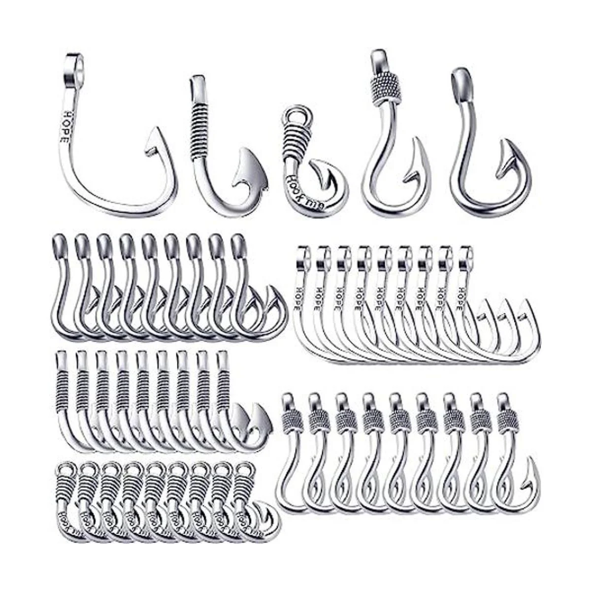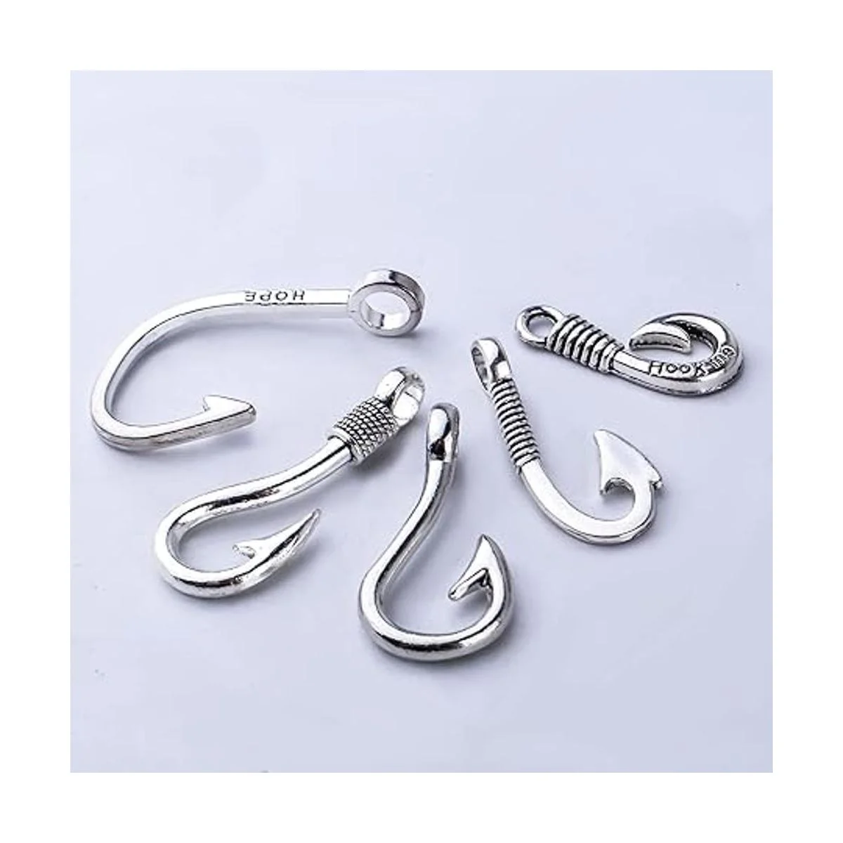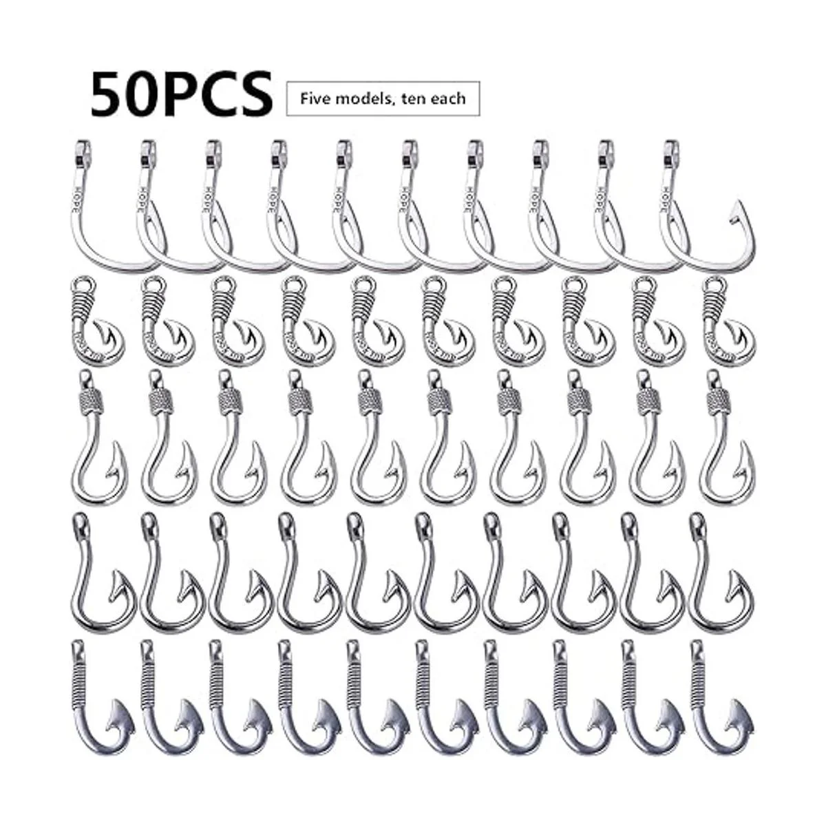 50 colgantes de anzuelo de plata envejecida, 50 colgantes de anzuelo de pescado, para pulsera de bricolaje, collar, llaveros, joyería, manualidades, suministros de fabricación, 5 estilos