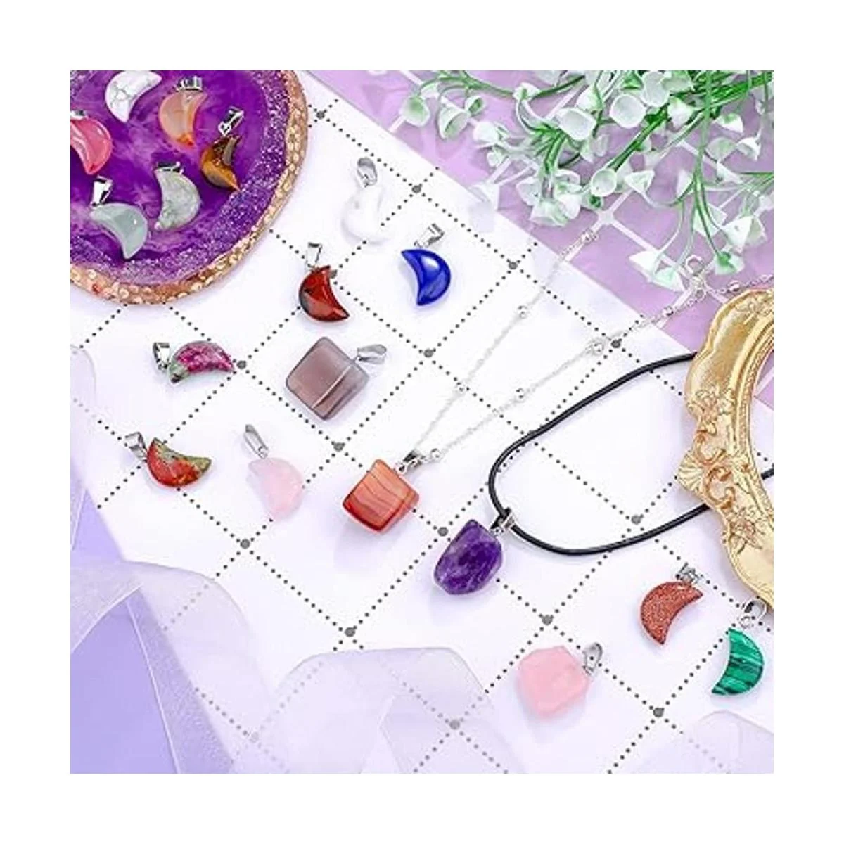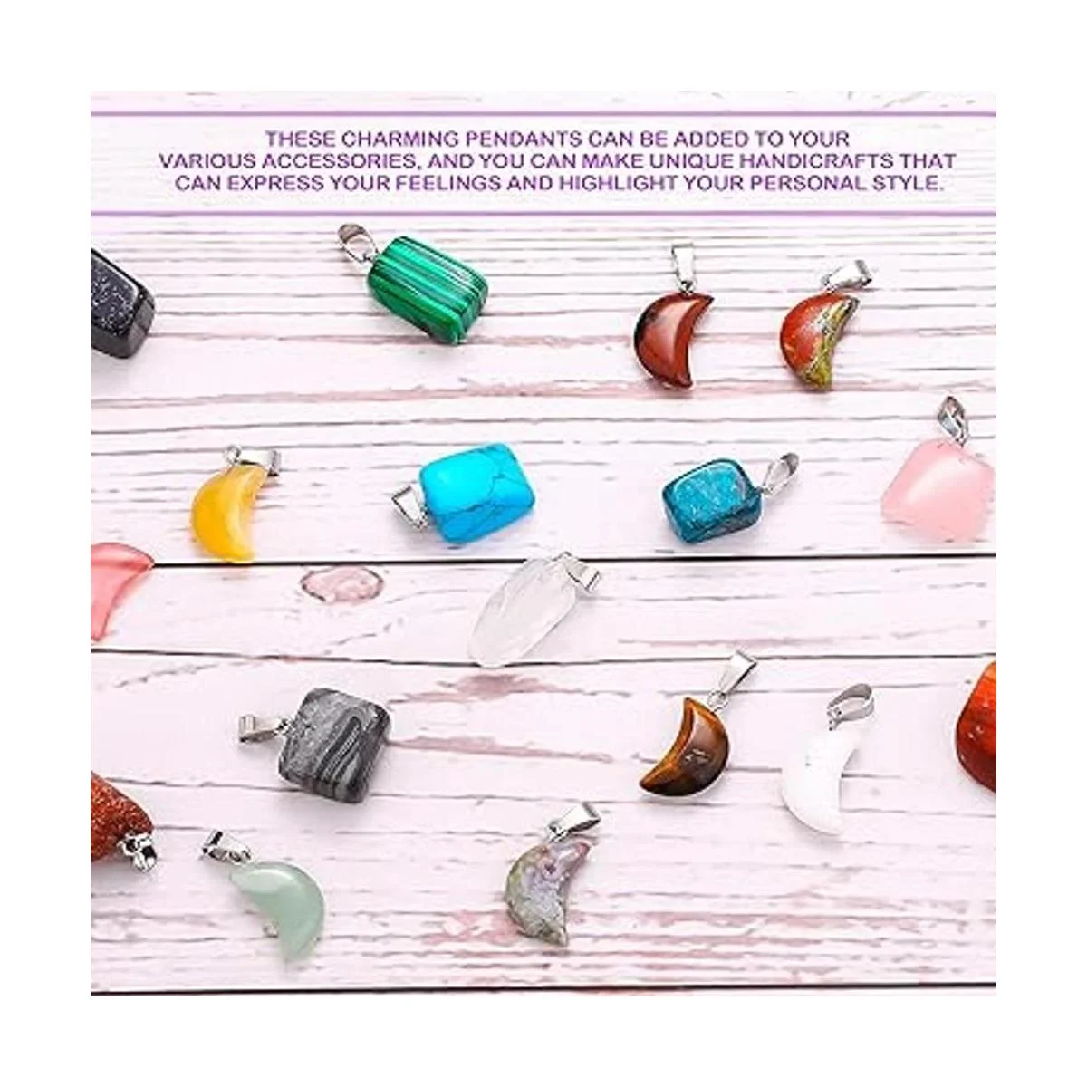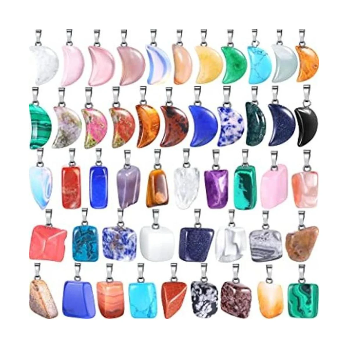 50 colgantes de piedra preciosa, cuentas de piedra curativa irregular, colgantes de piedra en forma de luna, cuentas de piedras preciosas naturales, dijes de cuarzo para manualidades, pulseras, collares, aretes, fabricación de joyas, Piedra sintética, Piedra sintética