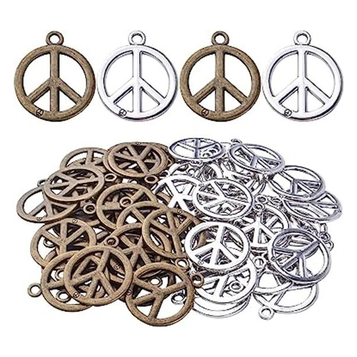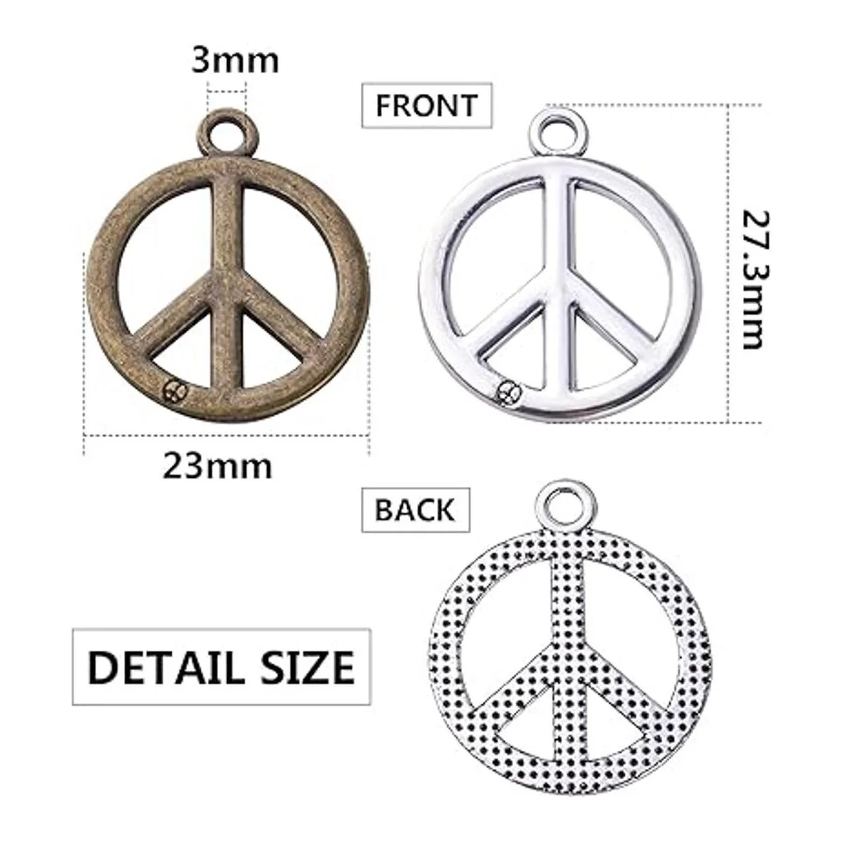 50 colgantes de símbolo de la paz de la vendimia de la paz de los encantos de la joyería de la paz colgantes para el collar de los pendientes de la pulsera de la joyería de los hallazgos