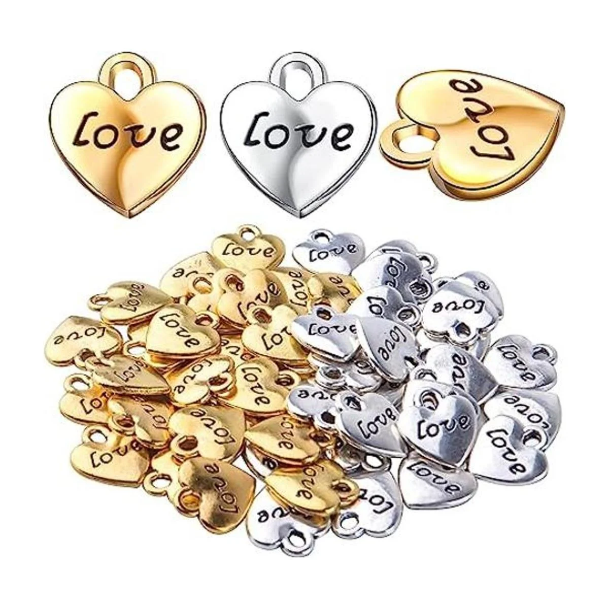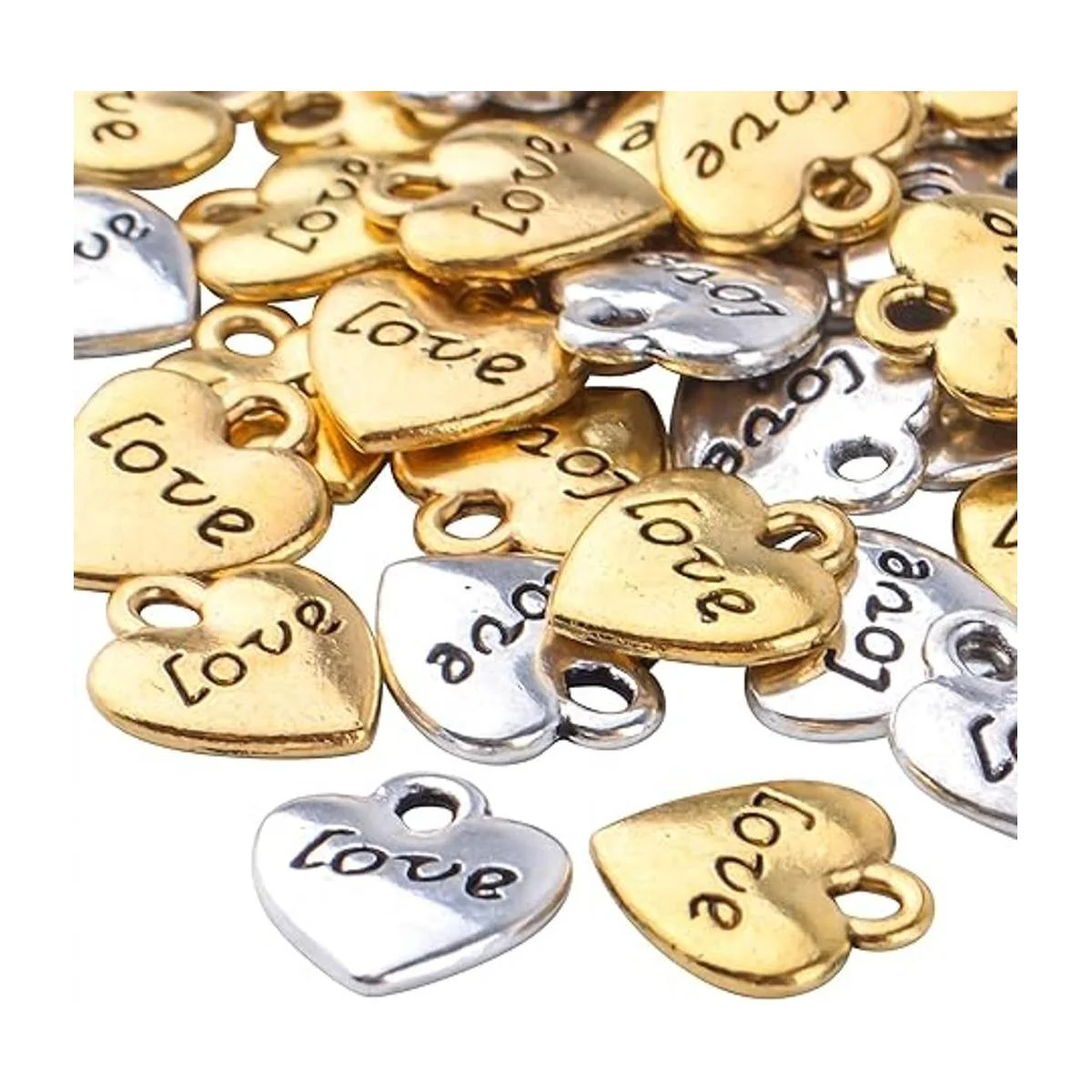50 colgantes en forma de corazón, para joyas, manualidades, collares, pulseras, oro y plata