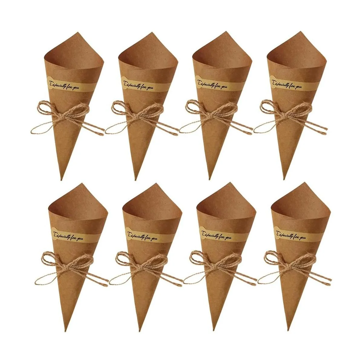 Estos conos de papel kraft son ideales para fiestas, ideales para guardar confeti, mini ramos, dulces, pétalos, chocolates y otros paquetes de regalo, etc