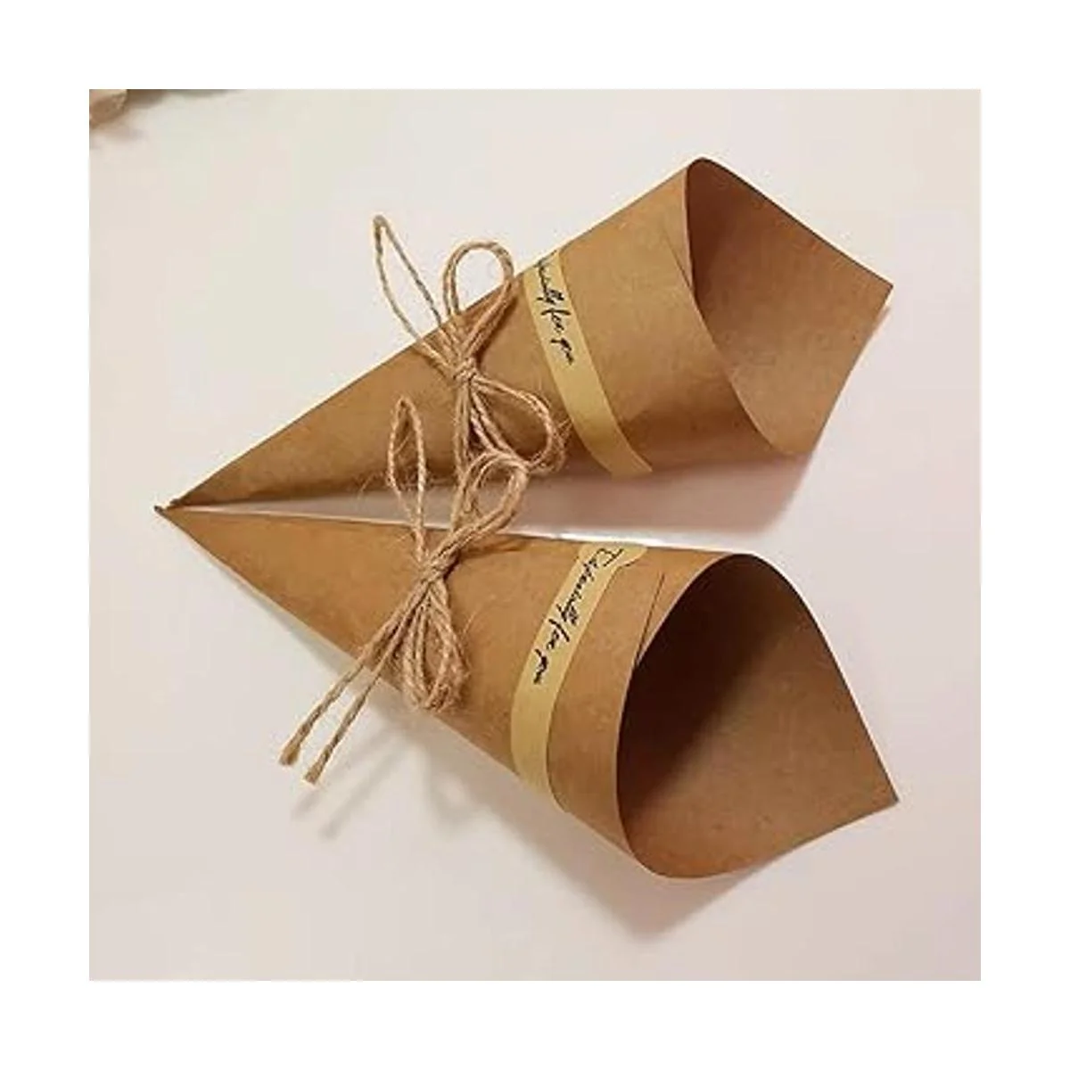 50 conos de papel kraft para regalo, confeti de boda, caramelos, regalo de flores, con cuerdas de cáñamo para bricolaje, decoración de mesa de boda, fiesta, embalaje de regalo, color marrón