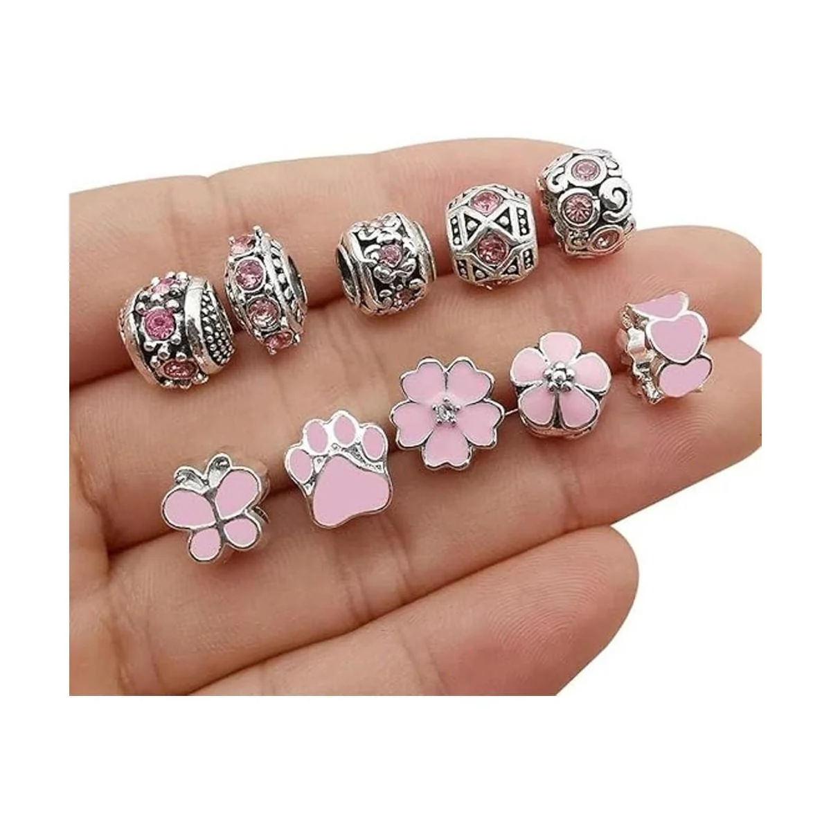 50 cuentas de cristal de imitación de resina rosa surtidas europeas con agujeros grandes de diamantes de imitación de metal con diamantes de imitación, surtidos de cuentas para manualidades, pulseras, collares, fabricación de joyas M567rosa