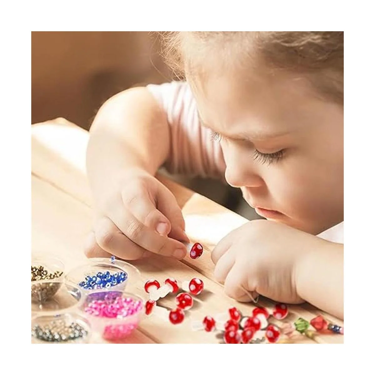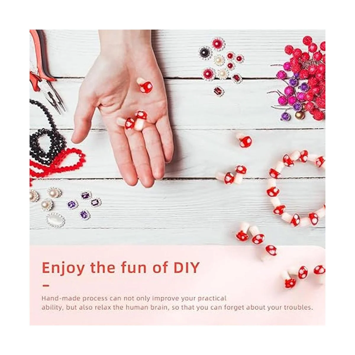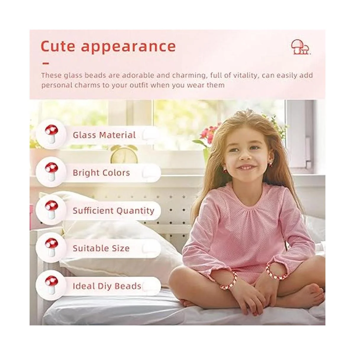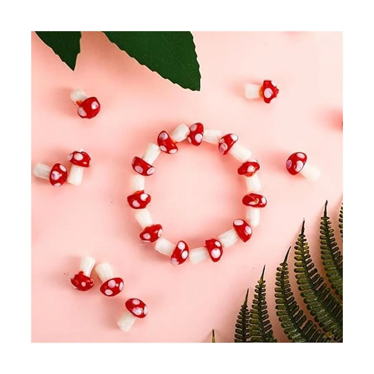 Aspecto bonito: estas cuentas de cristal para hacer joyas están diseñadas en forma de seta en color rojo con patrón de puntos blancos decorados en la superficie, tienen un aspecto adorable y encantador, lleno de vitalidad, puede añadir fácilmente encanto personal a tu atuendo cuando uses manualidades terminadas hechas por estos pequeños artículos