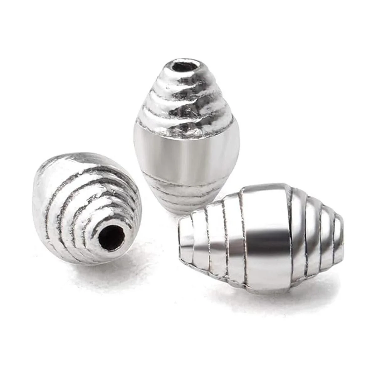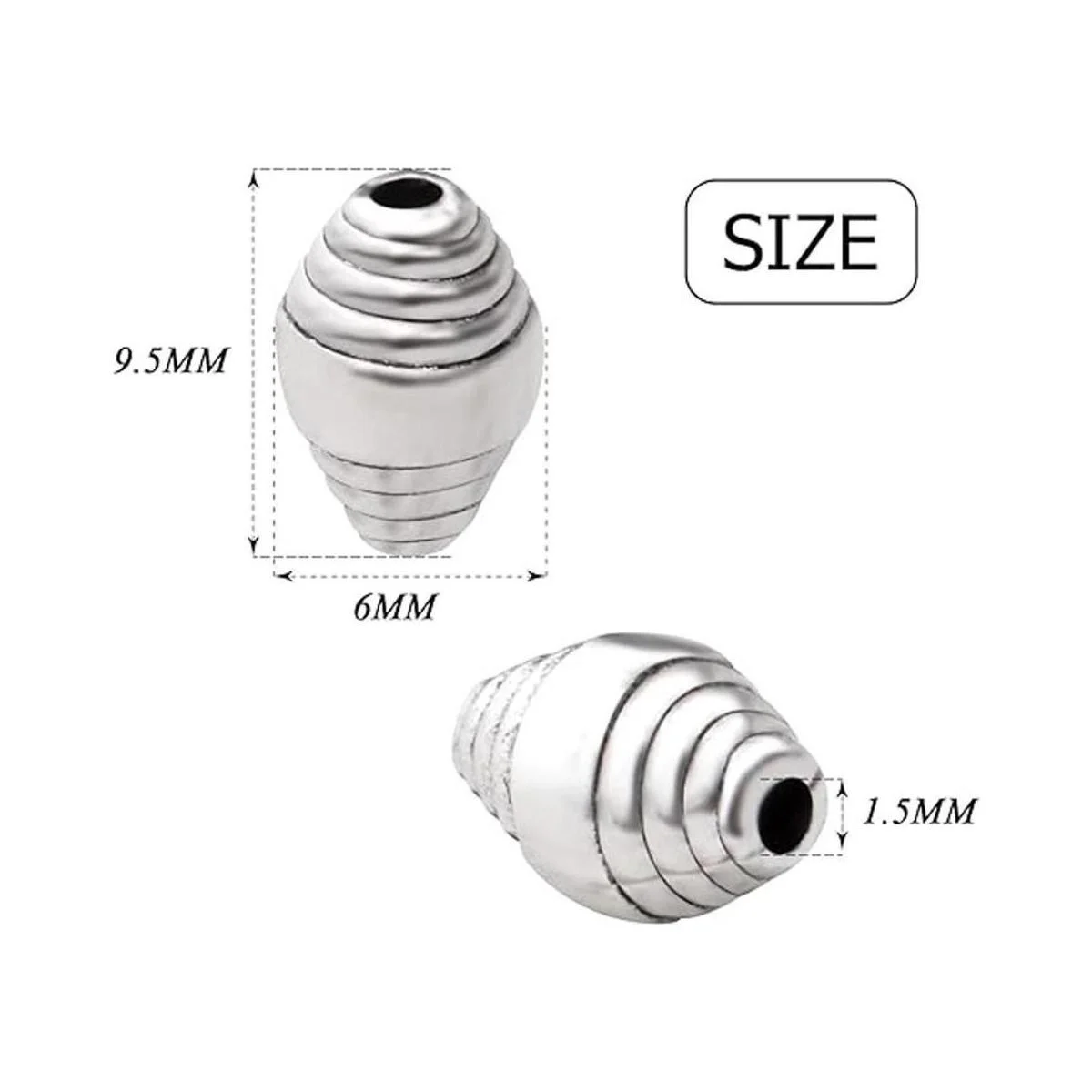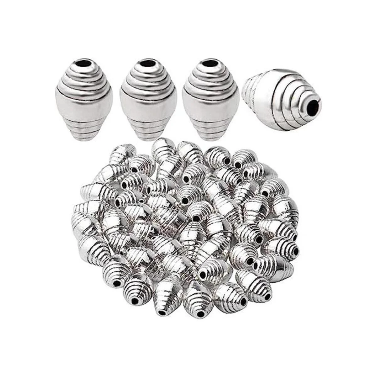 El paquete incluye: Recibirás 50 cuentas espaciadoras biconas con una caja en el paquete, el tamaño es de 0.374 in de largo, 0.236 in de ancho con agujero de 0.059 in. Puedes utilizar estas cuentas para hacer joyas de estilo europeo.