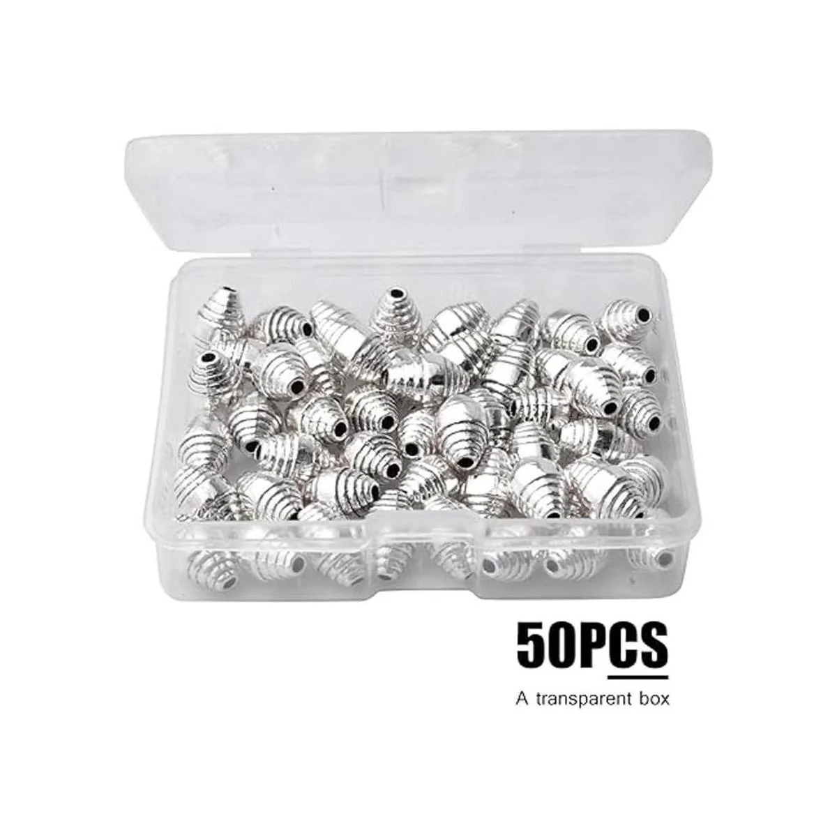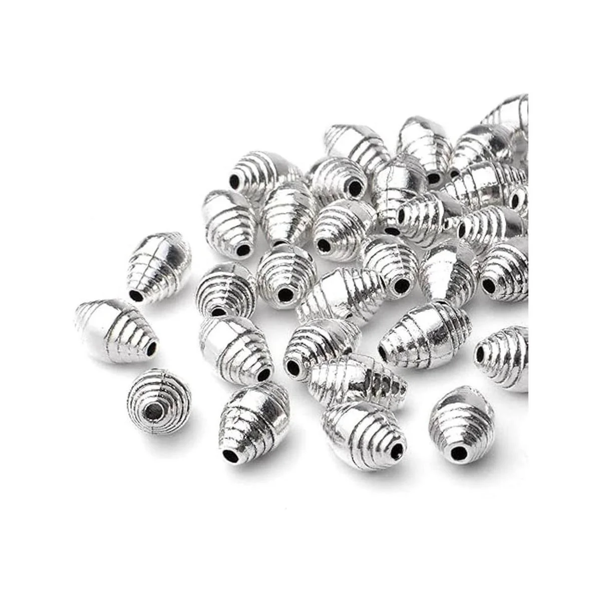 50 cuentas espaciadoras tibetanas de plata antigua, cuentas espaciadoras biiconas de aleación con una caja para hacer pulseras, collares, joyas