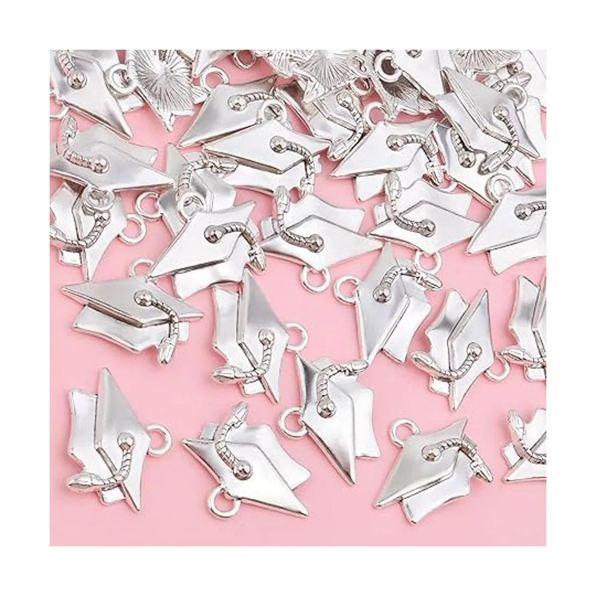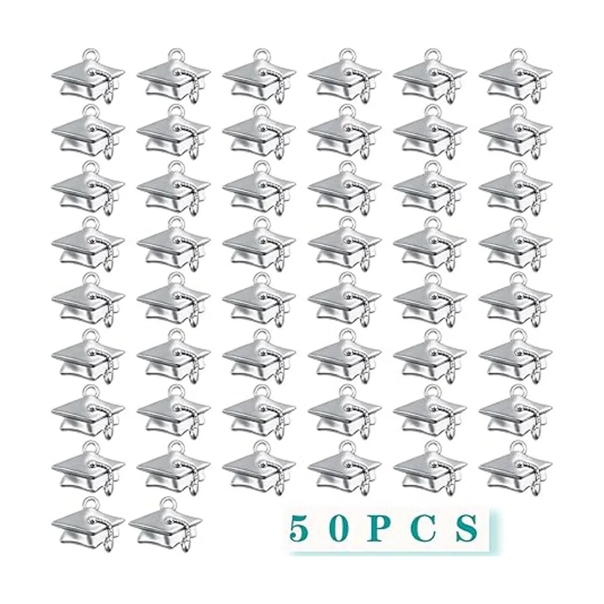 50 dijes colgantes de plata antigua de graduación de aleación para diploma de graduación para pulseras, collares, joyería, decoración de regalos