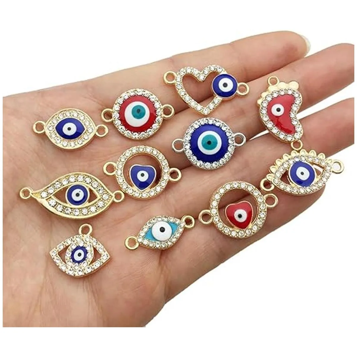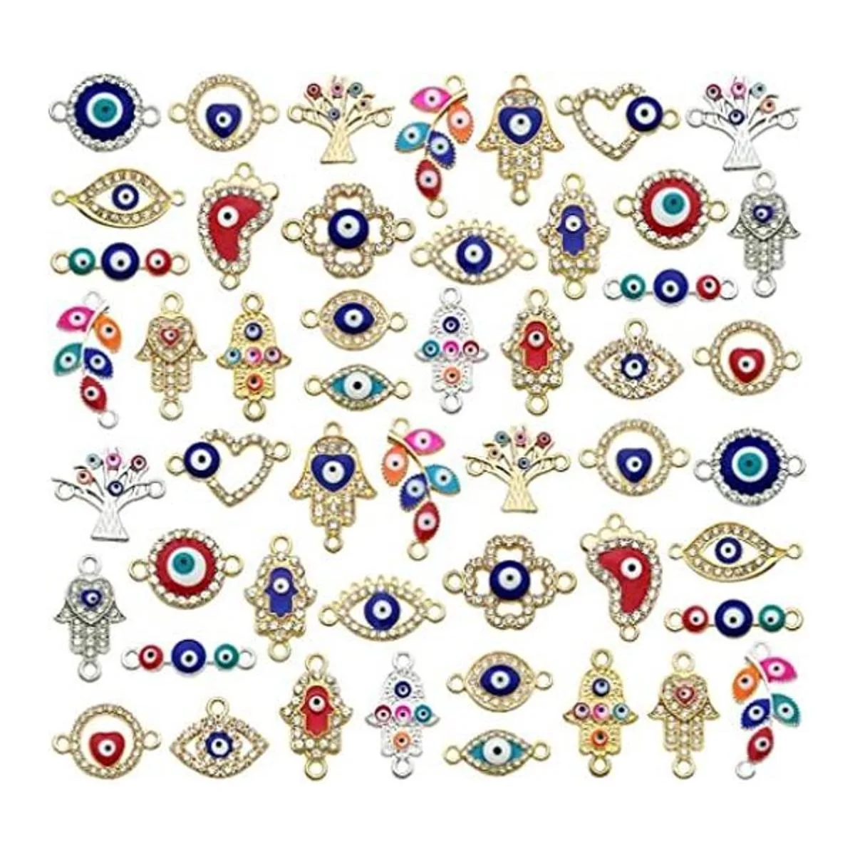 50 dijes de cuentas contra el mal de ojo para hacer joyas, varios conectores de mal de ojo, diamantes de imitación, eslabones para mujer, pulseras, aretes, collares, manualidades M703