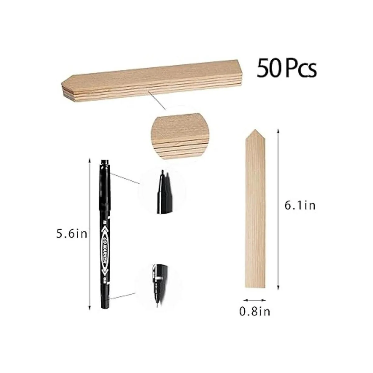 50 etiquetas de plantas de madera, impermeables, marcadores de jardín, etiquetas de jardín, palos de jardín, etiquetas de jardín, varillas de madera ecológicas, estacas para semillas, hierbas, flores, verduras, 6 x 0.78 pulgadas
