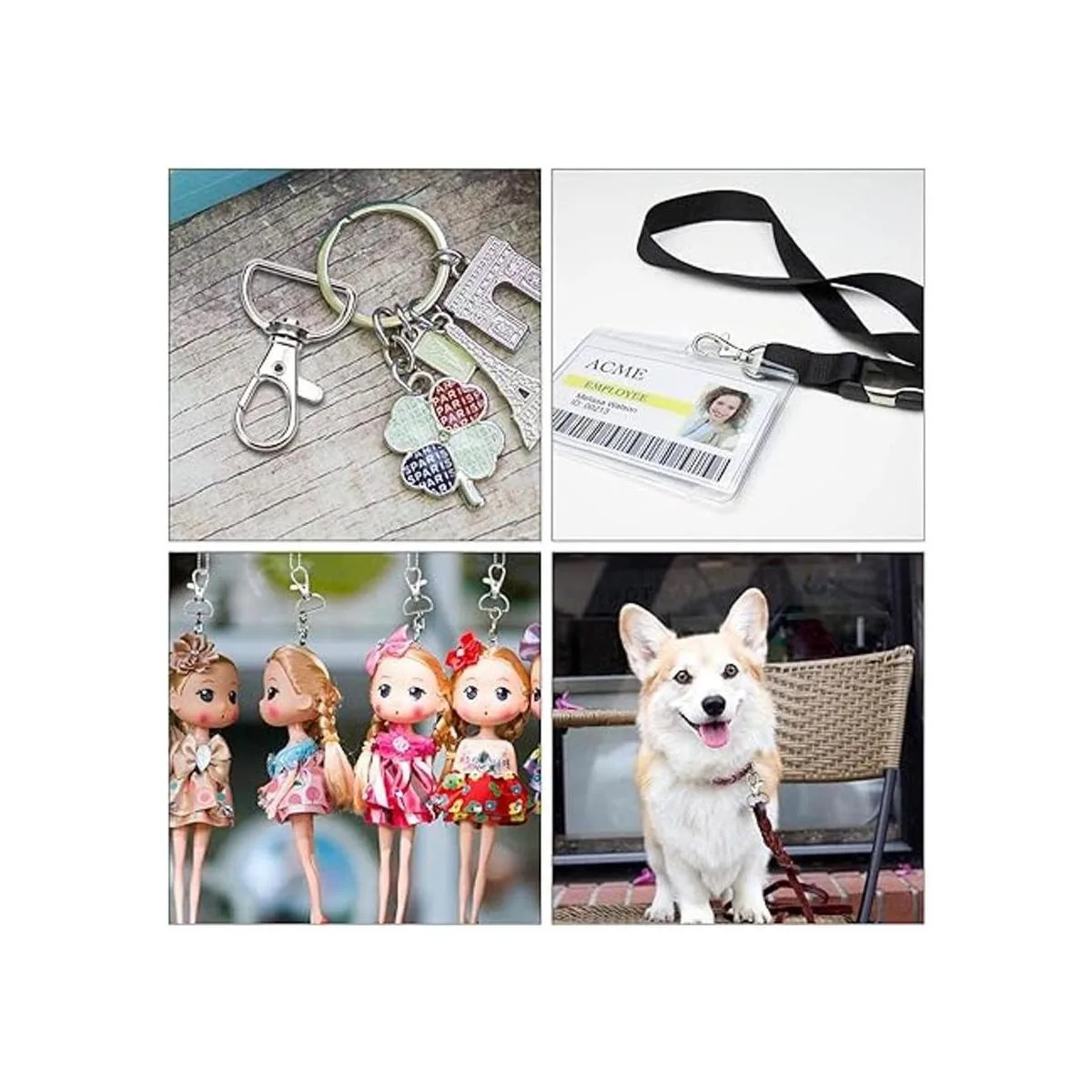 Ampliamente utilizado: cierre de mosquetón de alta calidad adecuado para cordones, correa de cincha, llaveros, bolso, collares de perro, también ideal para hacer joyas, proyectos de arte para niños y otros objetos pequeños.