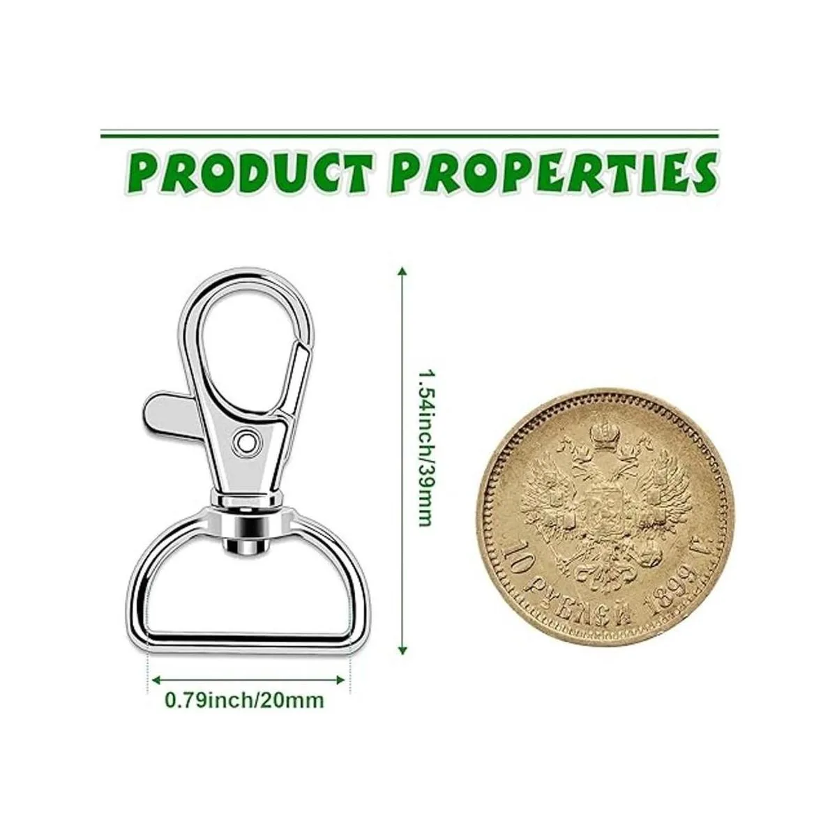 Tamaño: el gancho de clip para llavero es de 1 1/2 pulgadas de largo con un anillo en D de 3/4 pulgadas de ancho interior. Buen tamaño para que coincida con tus proyectos de bricolaje, proyectos de arte, proyectos de llavero.