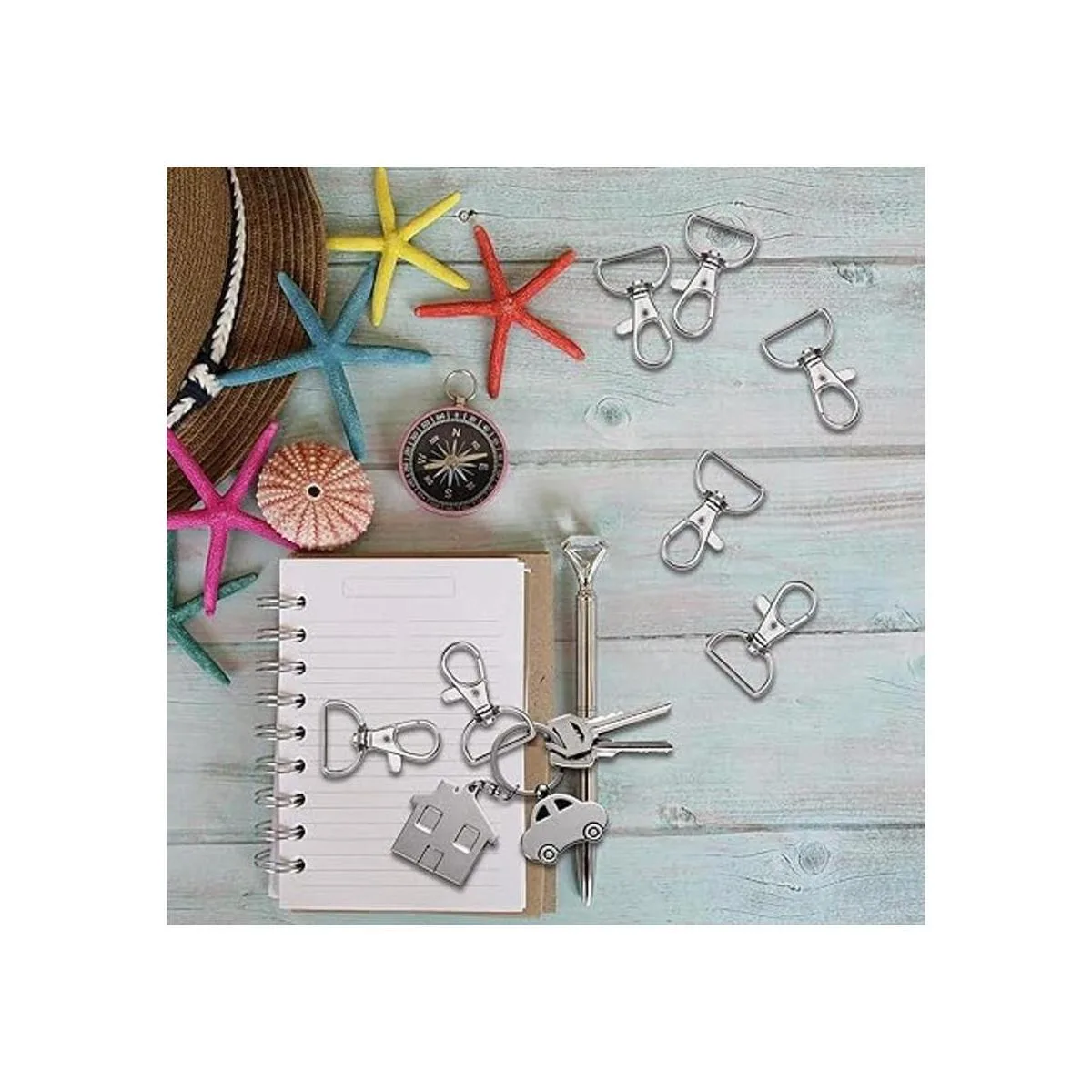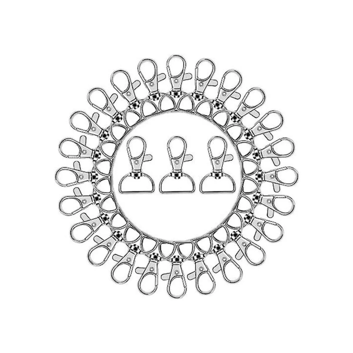Cantidad en el paquete: viene con 50 cierres de mosquetón giratorios con diseño de anillo en D, gran opción para proyectos de costura de llaveros de bricolaje.
