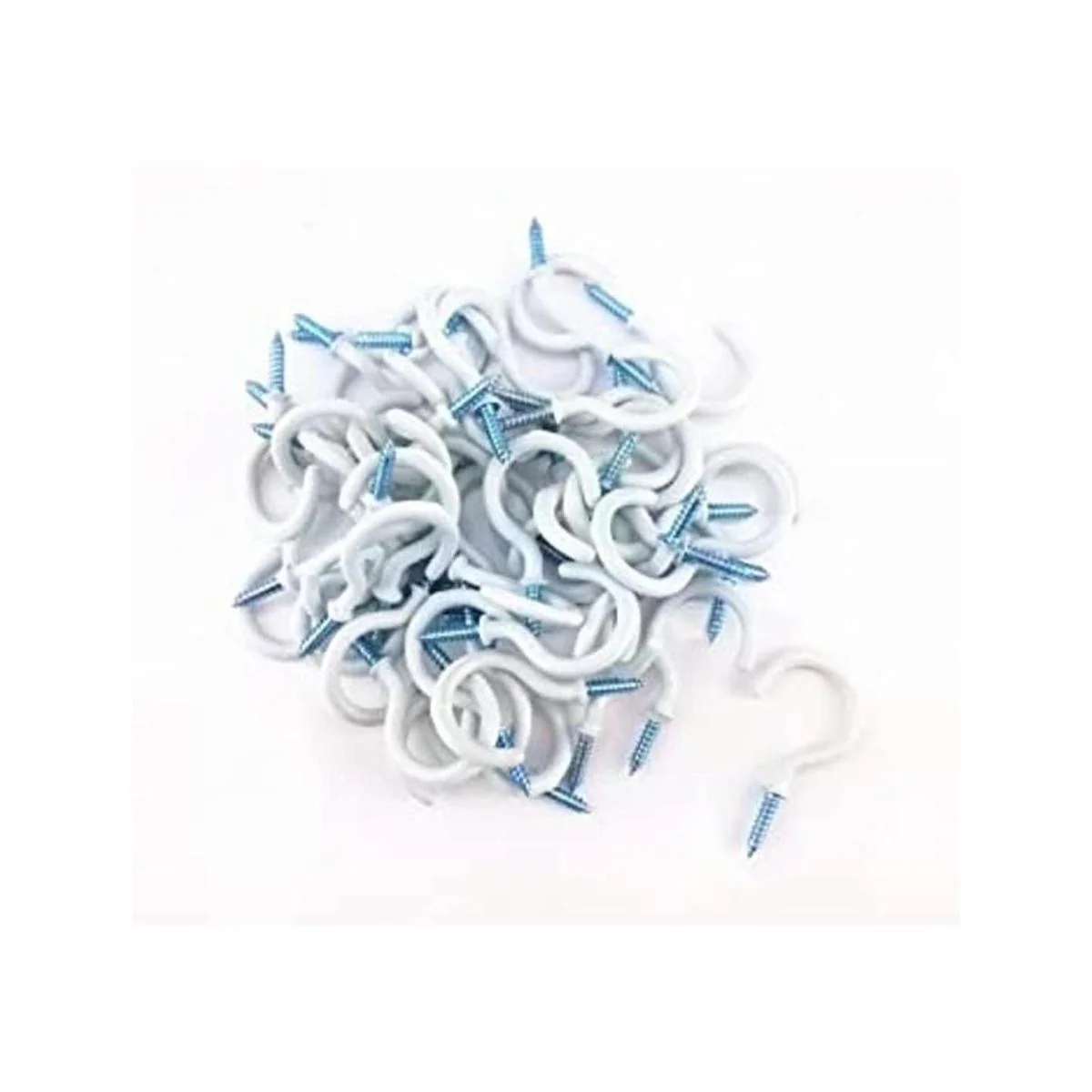50 ganchos Yueton recubiertos de vinilo, para atornillar en el techo, Blanco