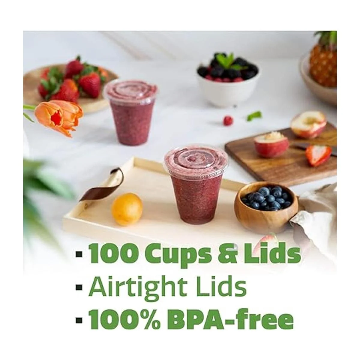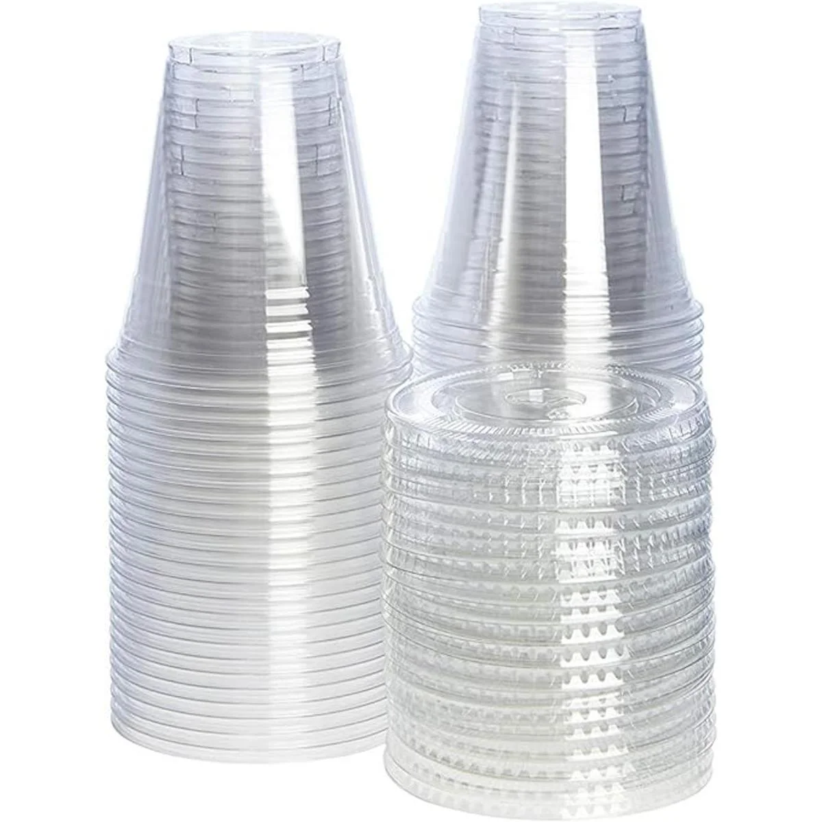 50 juegos 50 tazas y 50 tapas de 20 onzas. El paquete cómodo de tazas transparentes de plástico con tapas planas es ideal para bebidas frías como café helado, batidos, té de burbuja/buba, batidos, cócteles congelados, agua, refrescos y jugos.
