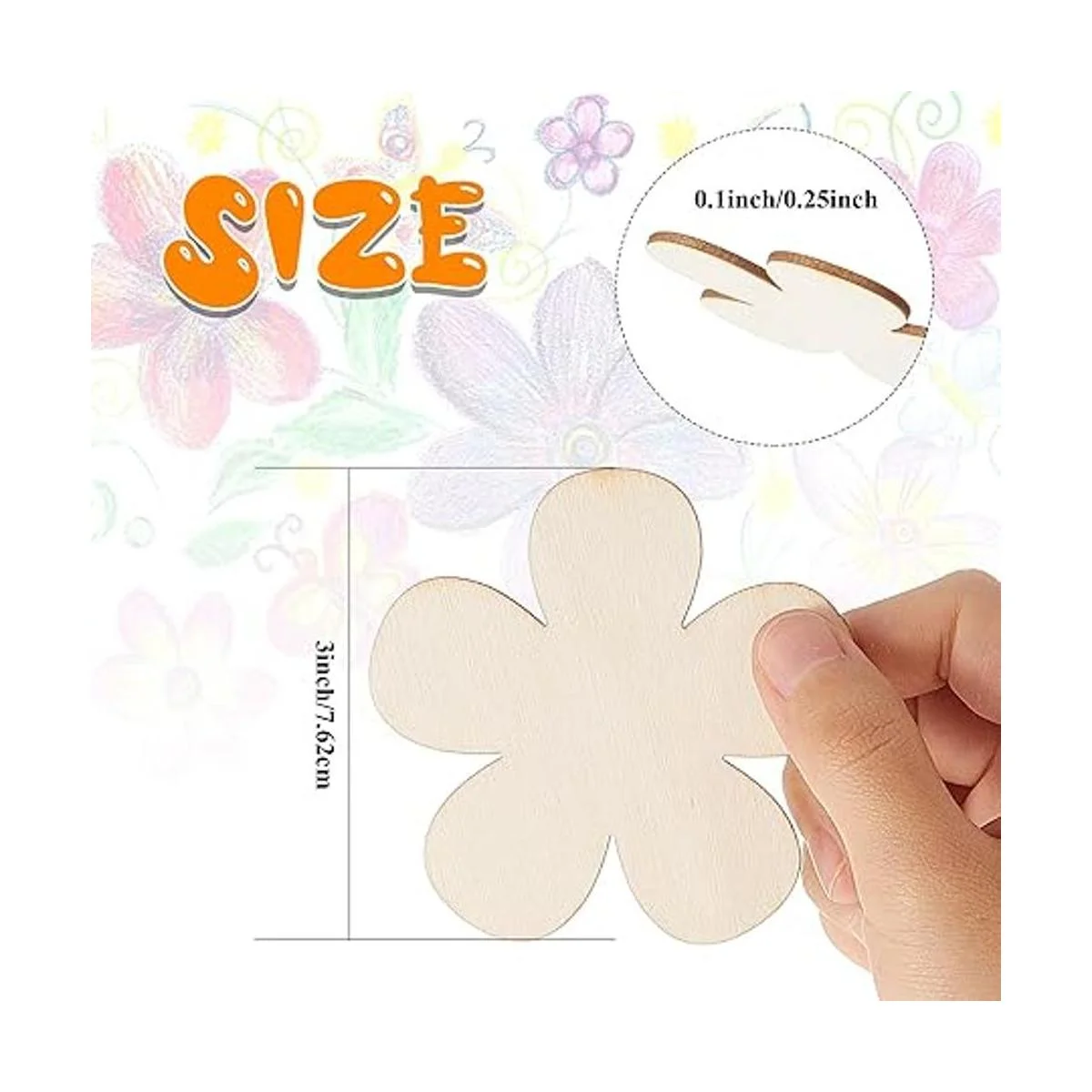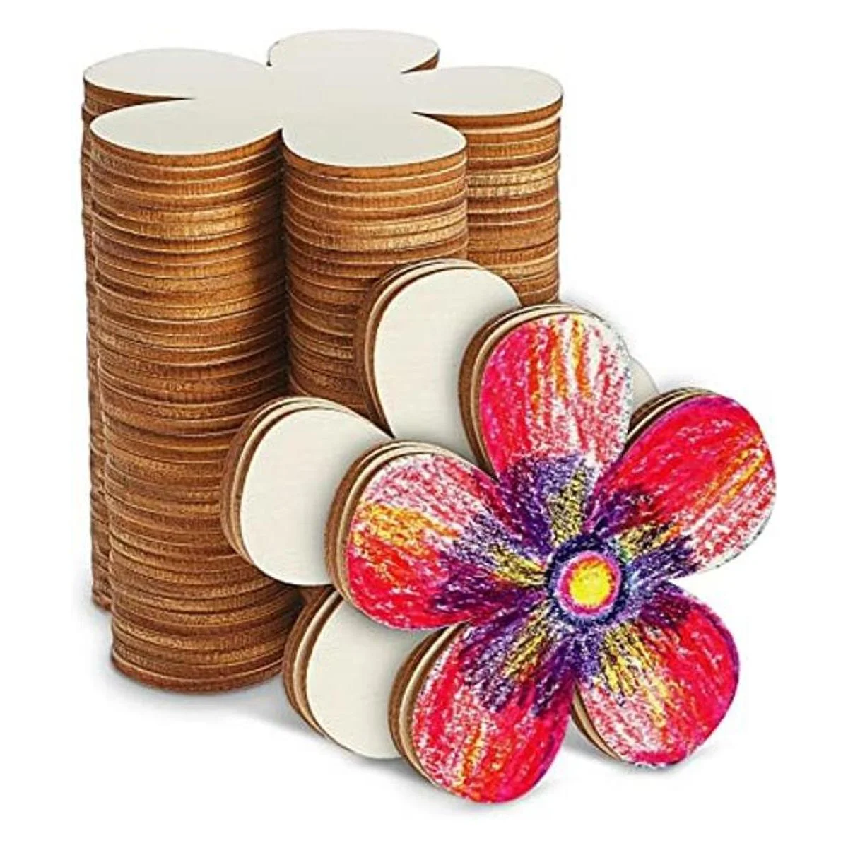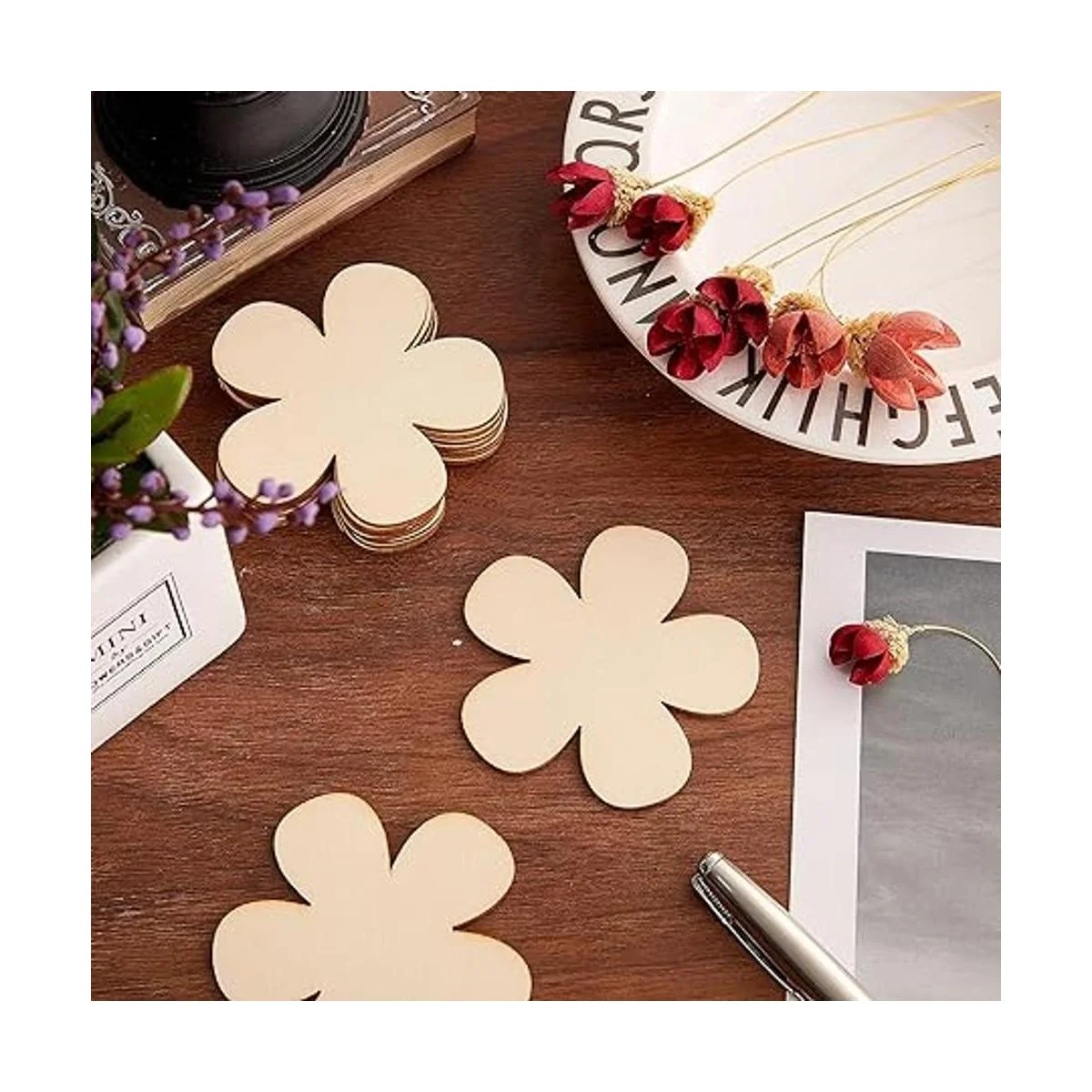 Suministros de manualidades de bricolaje: ambos lados de estos adornos de flores están en blanco, te permiten teñir o pintar fácilmente, o escribir con rotuladores, son adecuados para pintar a mano, letras y muchos otros proyectos de manualidades, puedes mostrar tu imaginación y creatividad en estas virutas de madera a voluntad