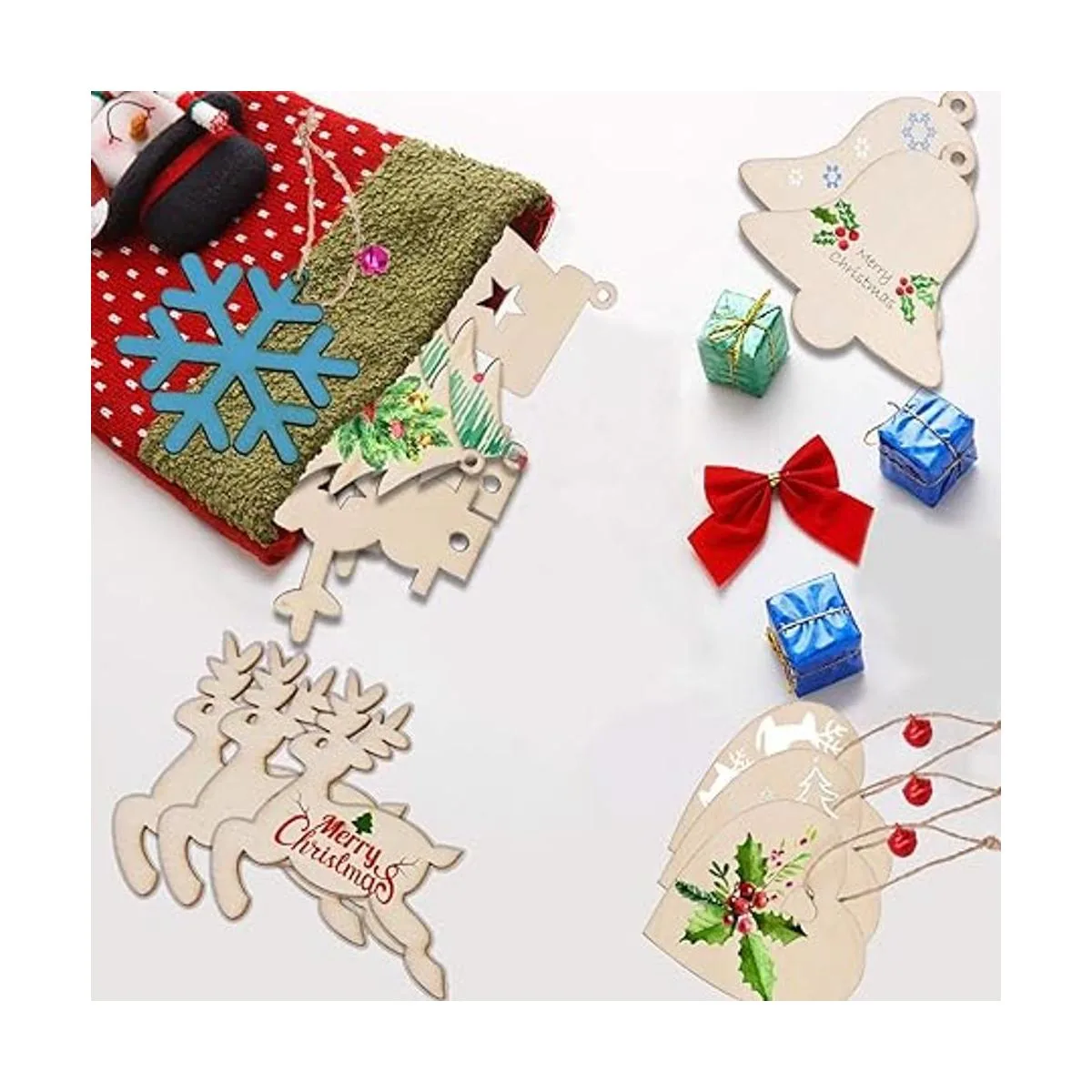 50 piezas de adornos de madera de Navidad, colgantes en blanco, rebanadas de madera sin terminar para colgar para festivales, manualidades, decoración, 10 estilos