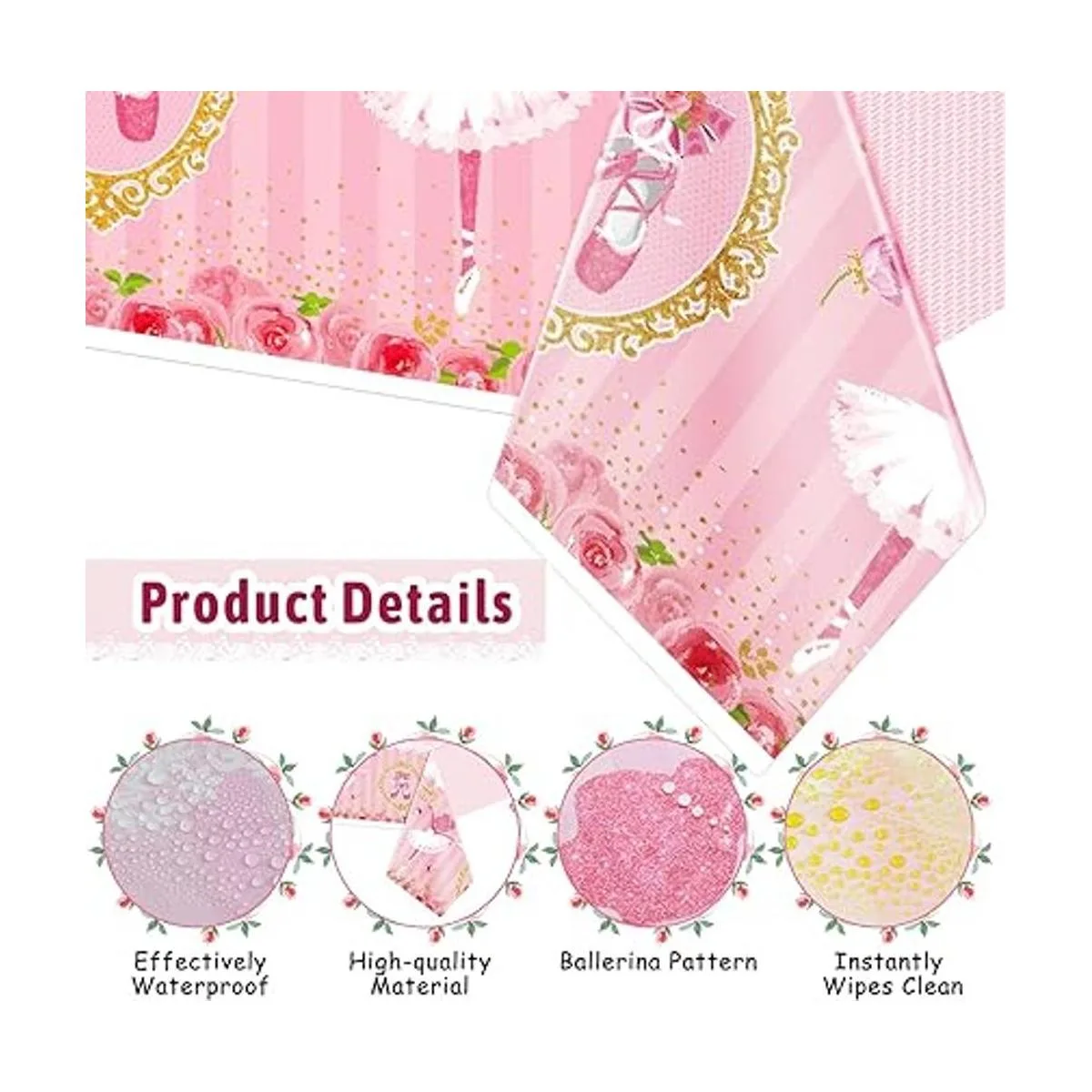 Añade más dulzura: el telón de fondo decorativo rosa y dorado con temática de ballet está diseñado con palabras artísticas doradas Happy Birthday, y principalmente viene en color rosa, hermoso y encantador, que añadirá más dulzura a tu fiesta y te traerá una agradable experiencia de apreciación