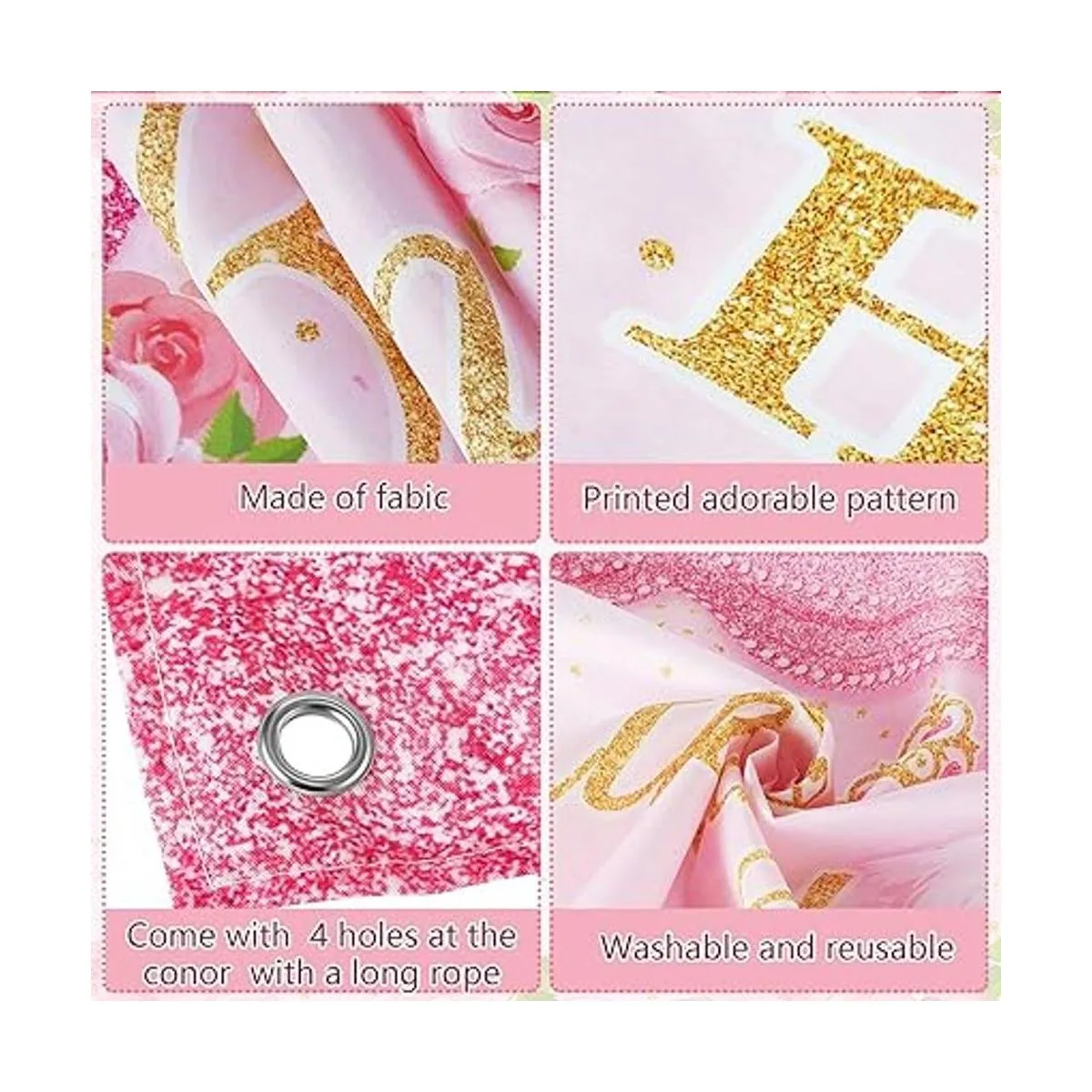 Cómodo de aplicar: puedes utilizar cintas para fijar el telón de fondo rosa y dorado en la pared, puerta, ventana, estante y chimenea, o puedes utilizar una cuerda para colgarlo en varios lugares como quieras; puedes obtener un efecto decorativo ideal sin aplicar una instalación compleja