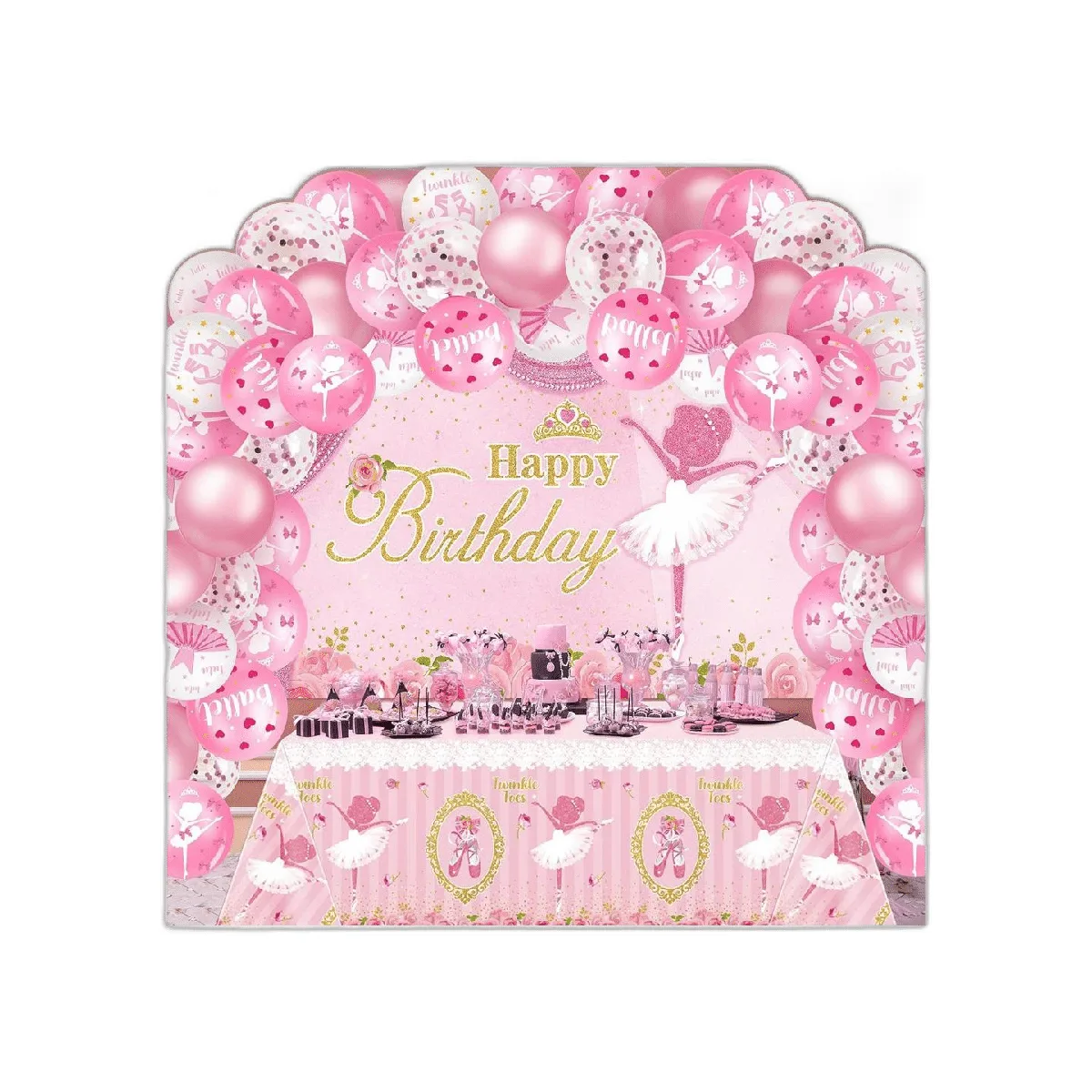 50 piezas de artículos de fiesta de cumpleaños de bailarina, manteles de ballerina, telón de fondo, tutú para niña, decoración de fiesta de cumpleaños, kit de arco de globos de bailarina rosa para baby shower, suministros de boda