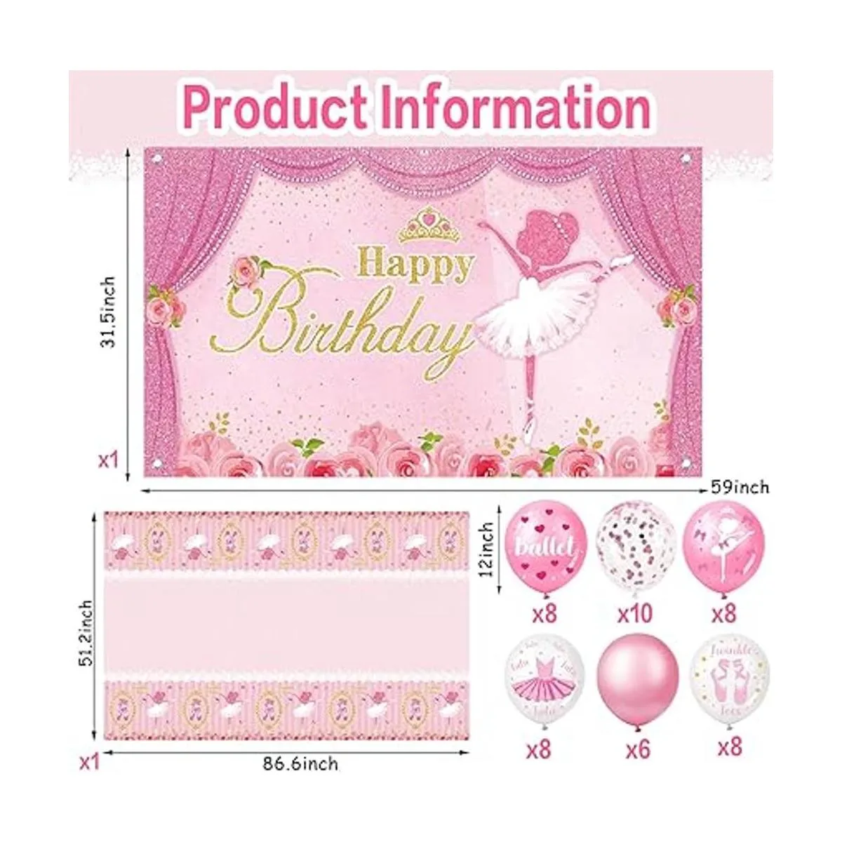 Gran cantidad de uso: el paquete viene con 1 fondo de cumpleaños de bailarina, 32 globos de bailarina en 4 estilos, 8 piezas de cada uno, 6 globos de color sólido, 10 globos de confeti rosa y 1 cubierta de mesa de fiesta de cumpleaños de bailarina, cantidad suficiente para satisfacer tu uso diario y necesidades de decoración de fiesta, que puede complementar los entornos circundantes u otras decoraciones de fiesta