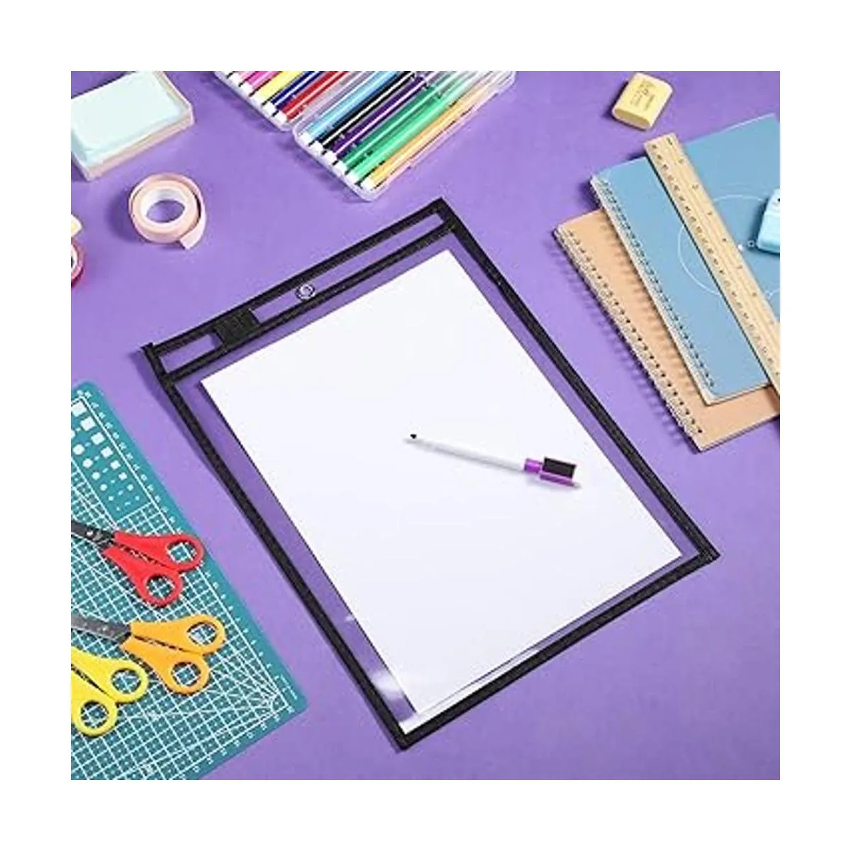 50 piezas de bolsillos de borrado en seco, fundas de plástico reutilizables, bolsillos de pedido, fundas transparentes, carpetas de boletos, soporte para tienda, bolsillos de pedido, suministros para profesores para la organización del aula negro