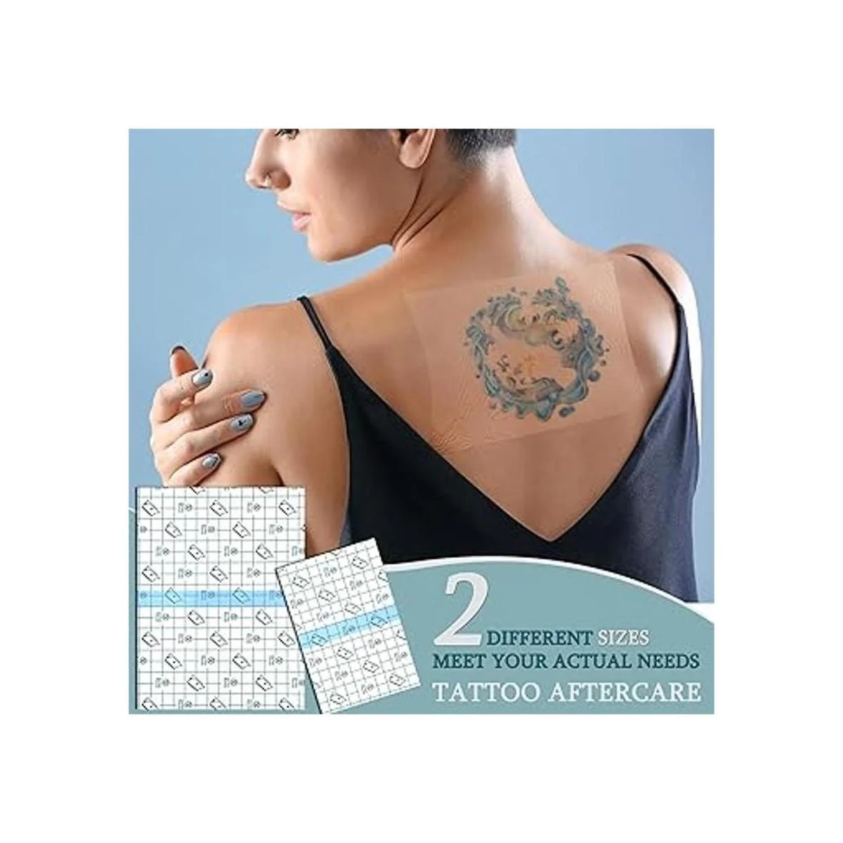 Fácil de usar: el vendaje adhesivo elástico transparente tiene líneas de cuadrícula en el papel posterior, fácil de aplicar y cortar a diferentes tamaños; las vendas de tatuaje son de 3 capas, compuestas por respaldo de PET, película de poliuretano, pegamento sensible a la presión y papel de liberación, fácil de usar