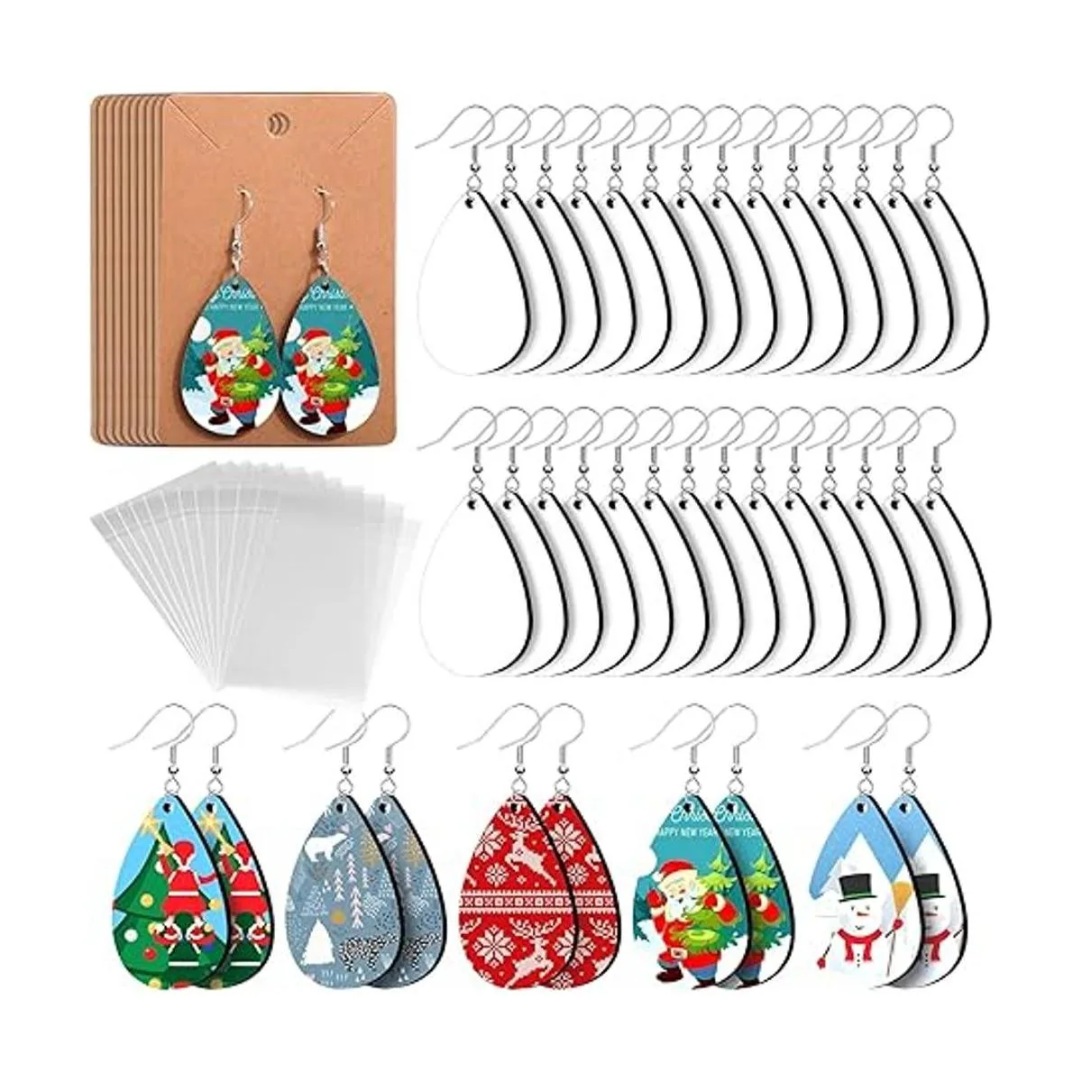 50 piezas de productos de sublimación en blanco Aretes de sublimación en blanco con ganchos para pendientes y anillos de salto para Halloween, Navidad, mujeres y niñas, accesorios de sublimación