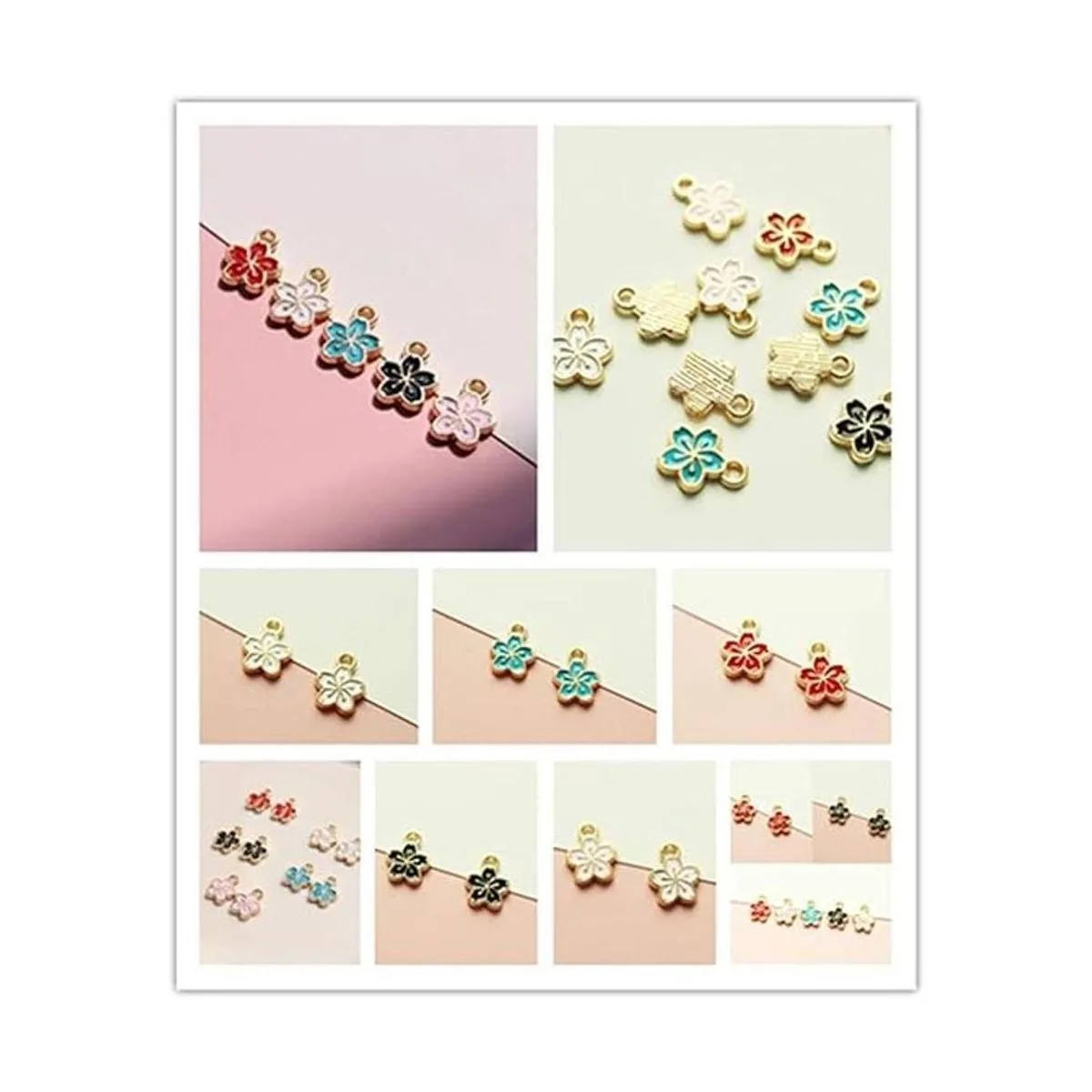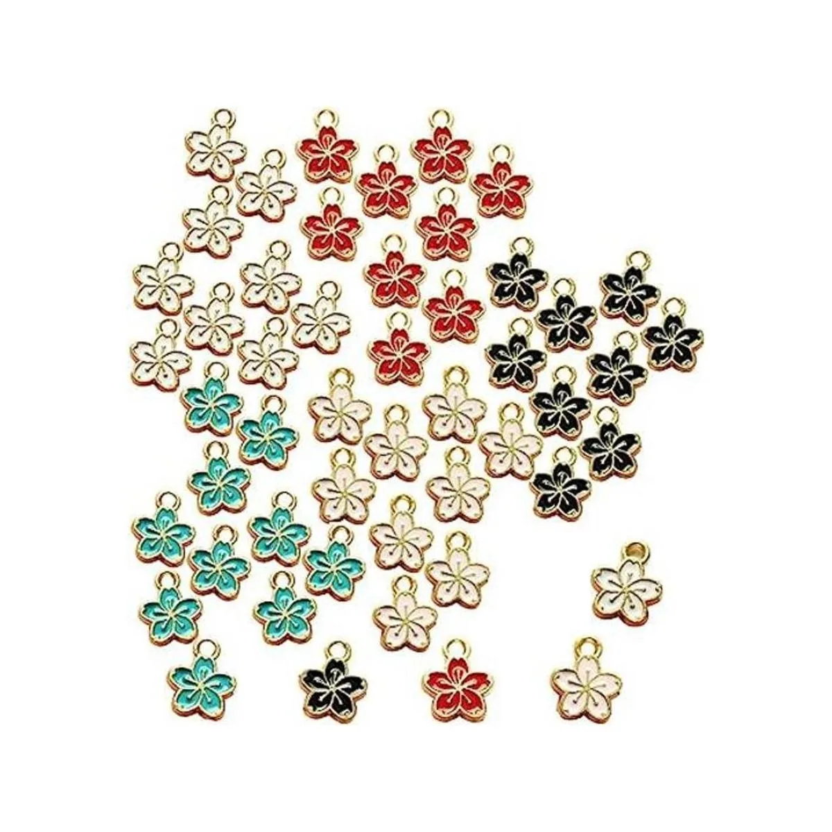50 piezas surtidos de 5 colores Sakura flor joyería encantos florales esmalte colgante rhinestone plana cuentas para joyería hacer vino etiquetas llavero encanto encanto encanto encanto encanto encanto encanto decoración del hogar Multi