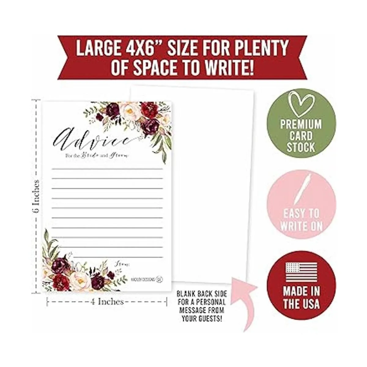 50 tarjetas de consejo de boda florales para novia y novio, boda libro de visitas alternativa, consejos y deseos para el señor y la señora, consejos para la novia, tarjetas de consejo de ducha, cajas de tarjetas de boda recepción