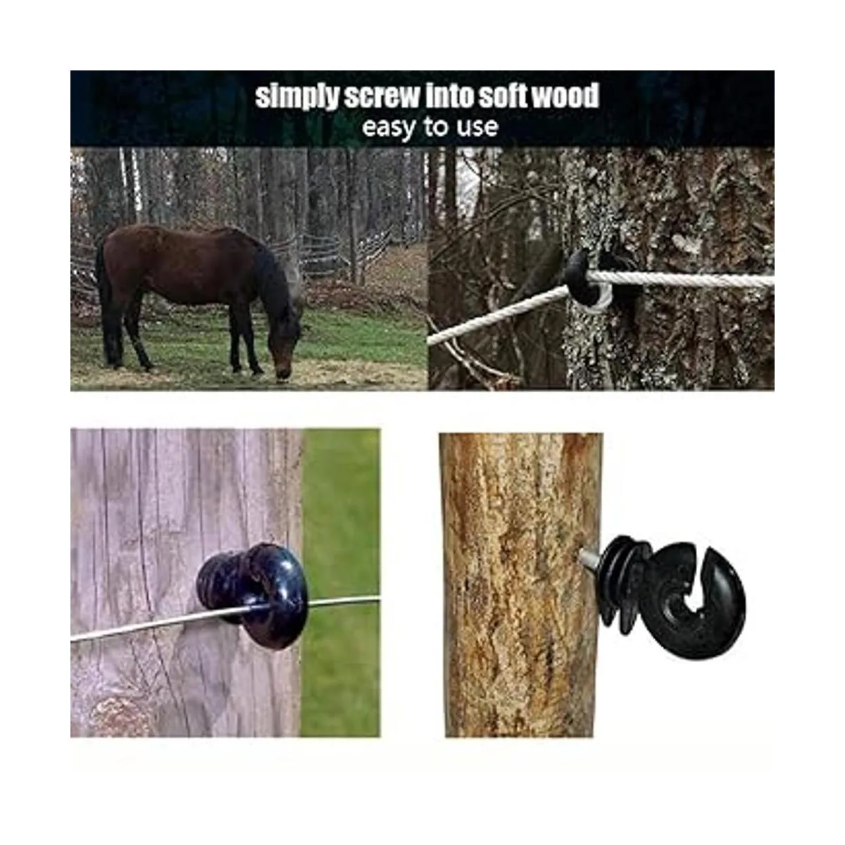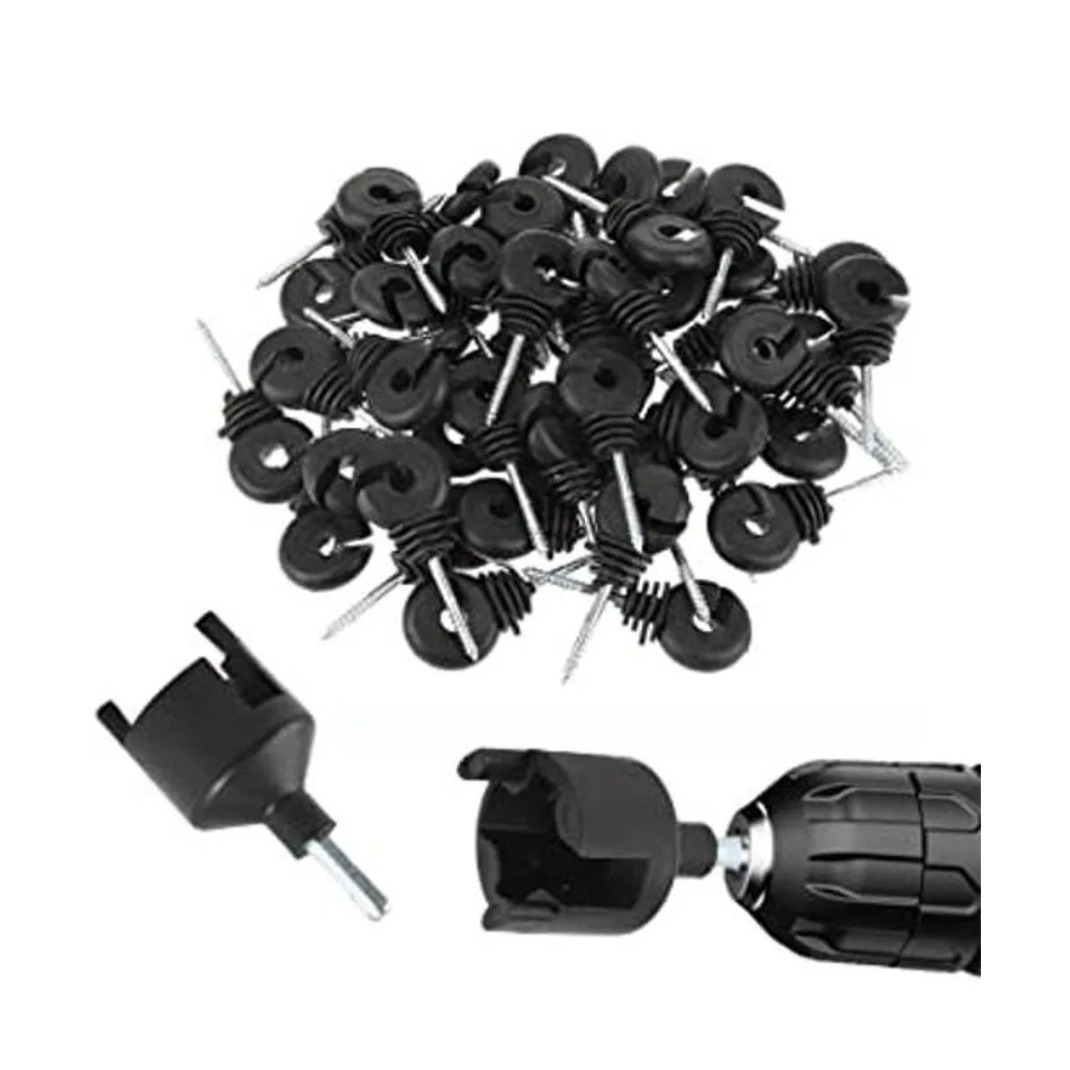 50 unidades aislantes eléctricos negros para valla aislantes atornillados, aisladores de postes de madera y 1 herramienta aislante accesorios de sistema de rejilla para ganadería de animales electrónicos