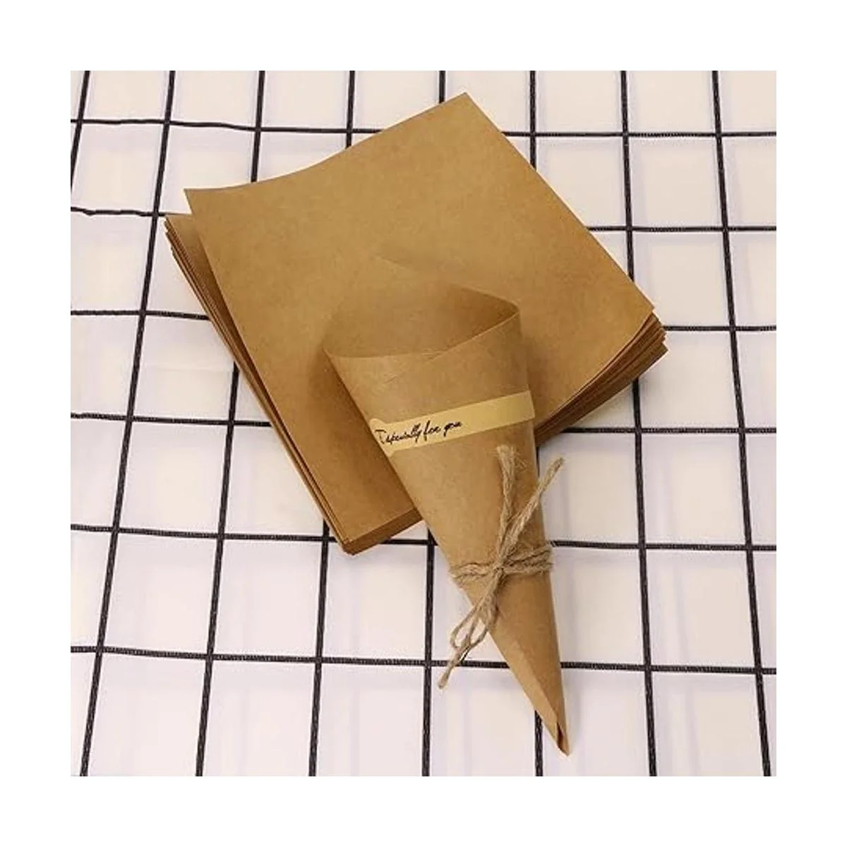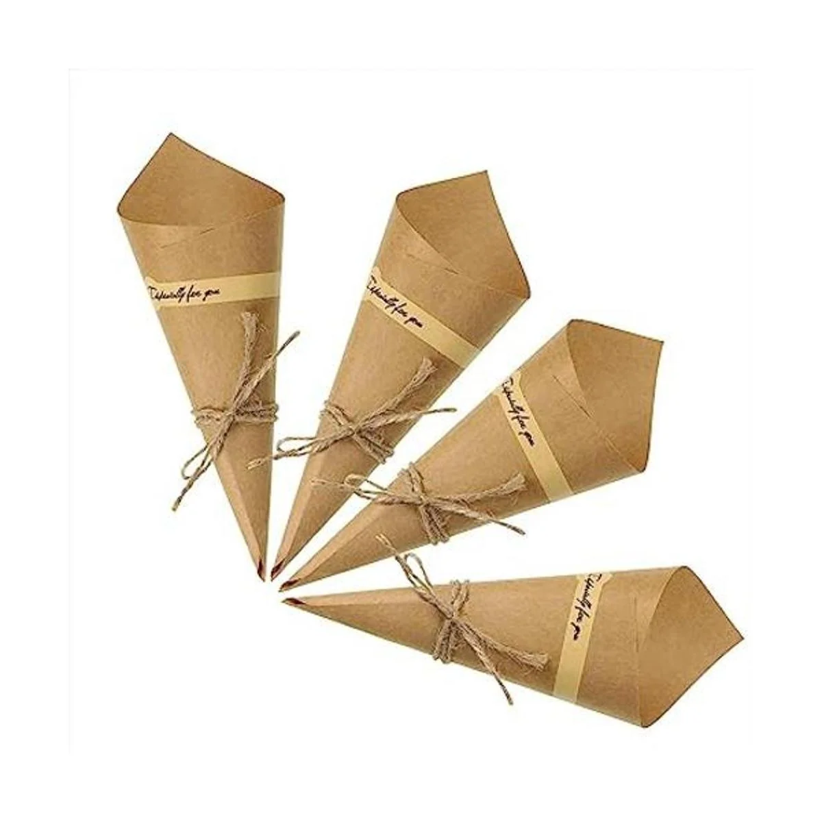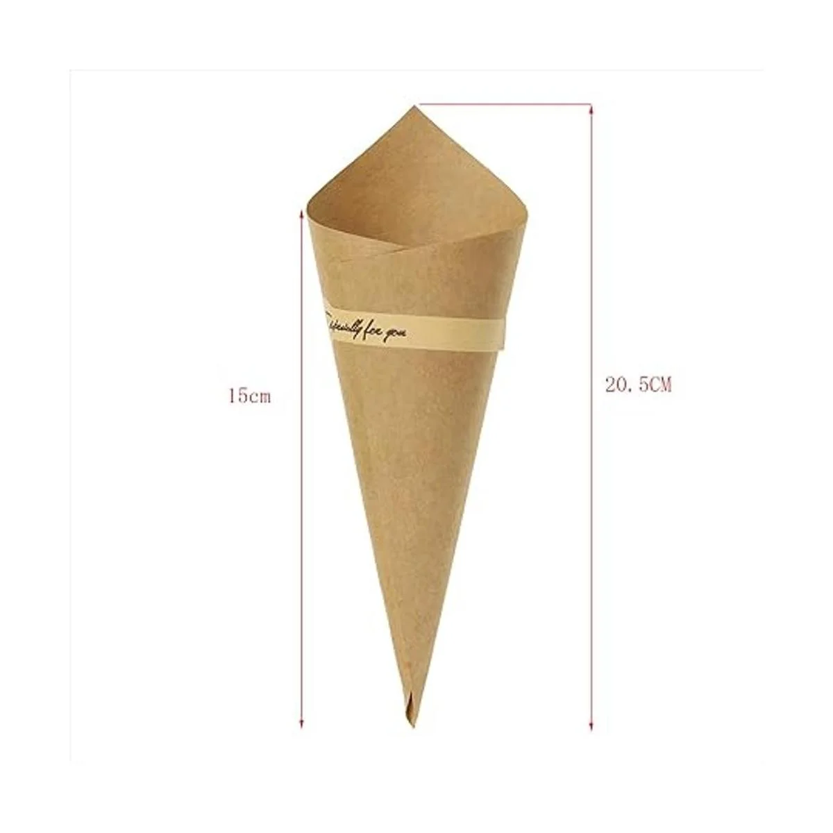 50 unidades de papel de cono de color original, diseño retro de papel kraft de flores secas, caja de embalaje de regalo creativa cono ramo de bricolaje boda caja de caramelo
