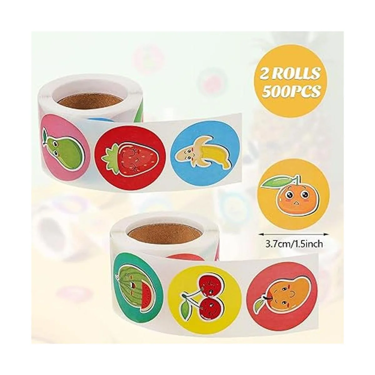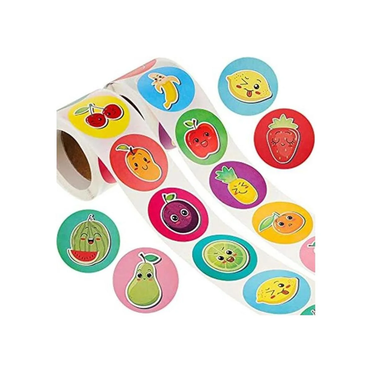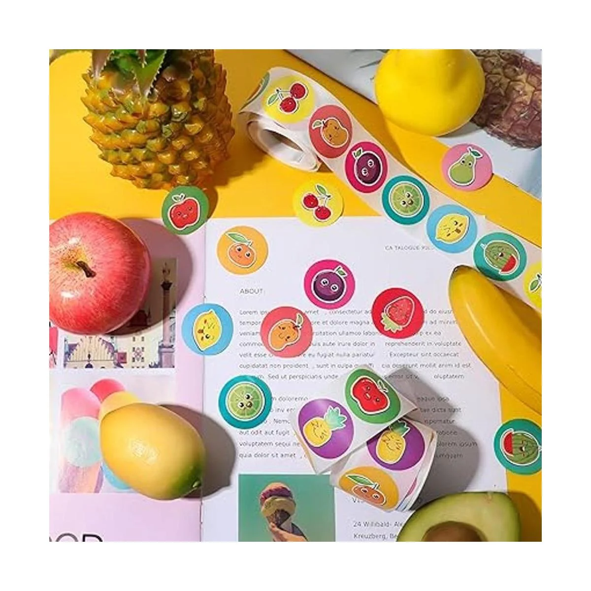 500 calcomanías en rollo de frutas, calcomanías de frutas felices, calcomanías de cara sonriente de frutas coloridas, bonitas calcomanías de uvas de plátano naranja manzana para niños, profesores, recompensas de aula, álbumes de recortes, manualidades de bricolaje