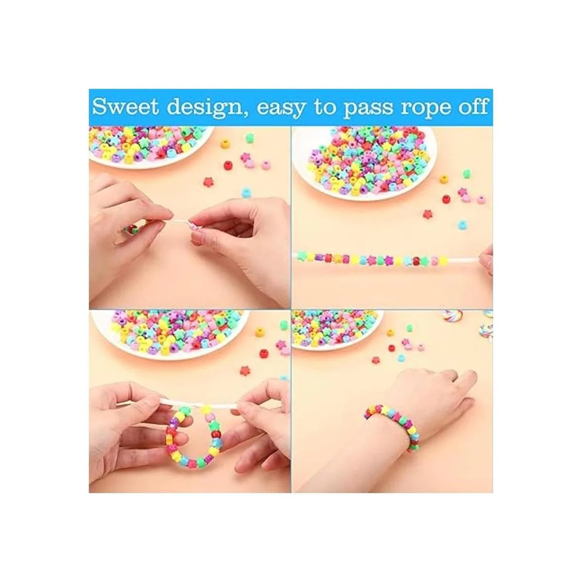 Aprende de ello: las cuentas de agujero de color arcoíris son buenas herramientas para profesores y padres, tu hijo o hija puede aprender a clasificar colores, pesar y contar, para producir una atractiva pieza de trabajo durante la clase de manualidades, puedes aprender mucho de ella mientras también disfruta de la diversión. Se requiere supervisión de un adulto y por favor ten cuidado para evitar el riesgo de asfixia.