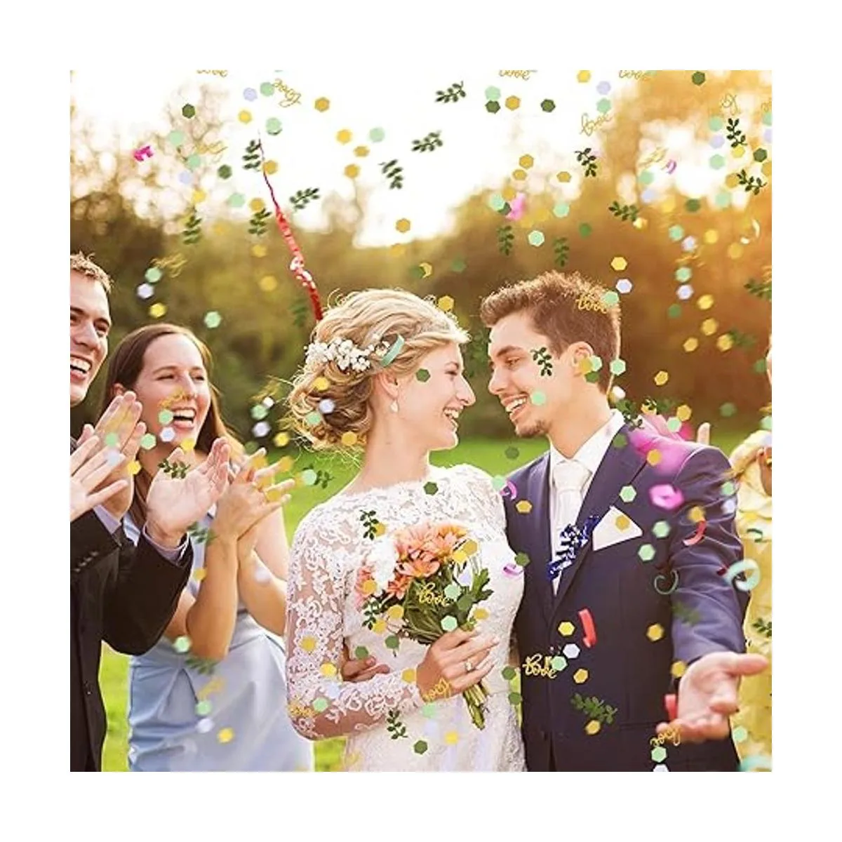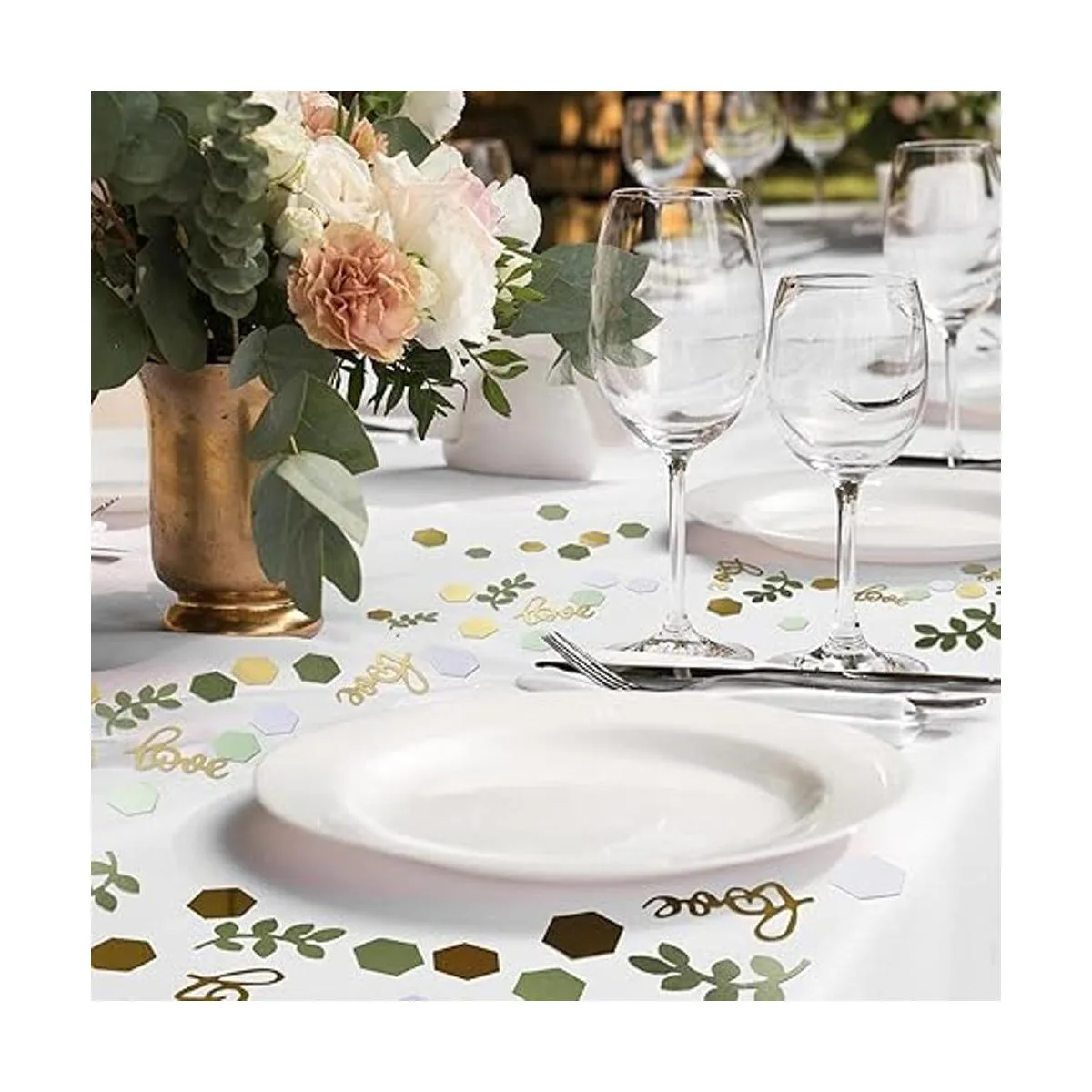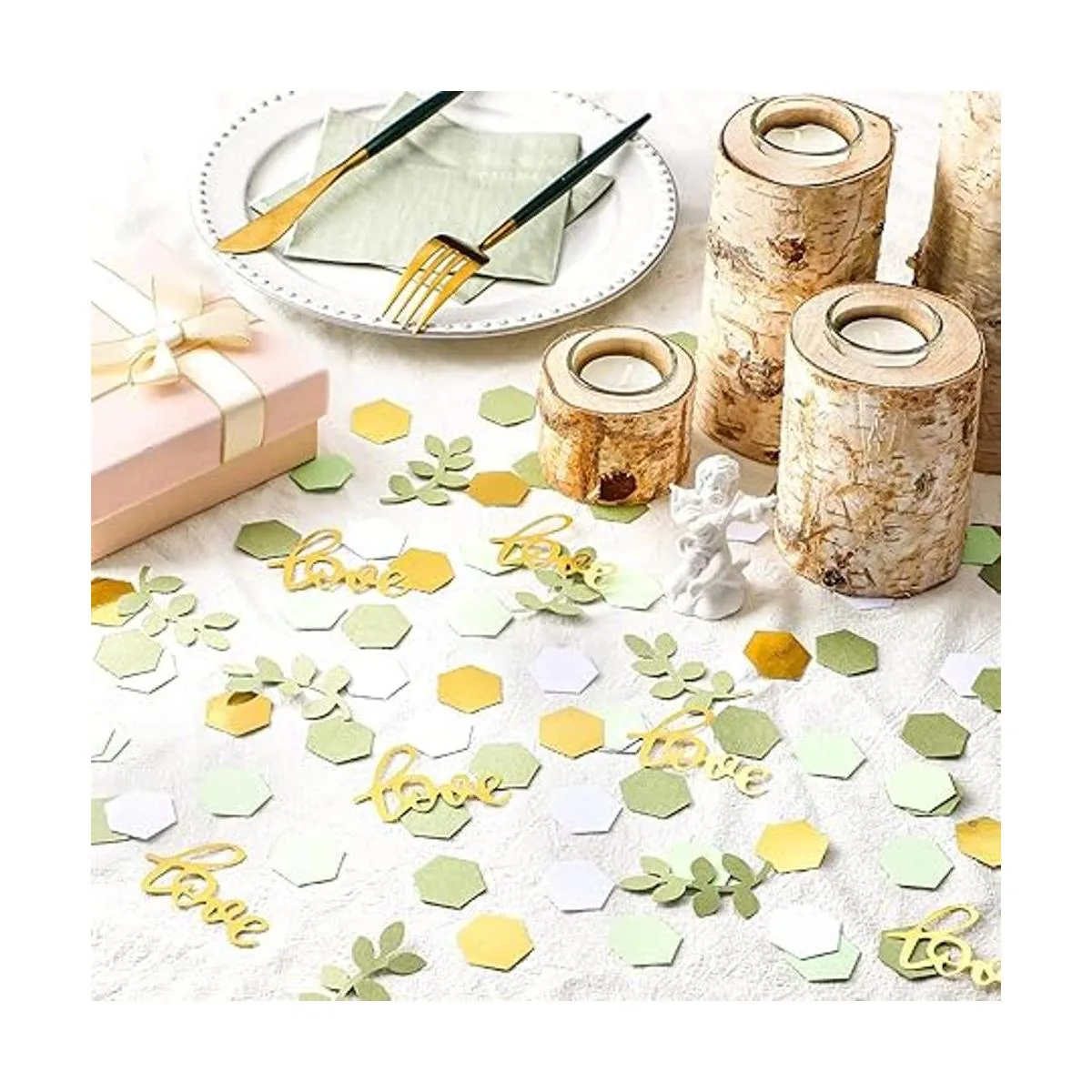 Atractivo y delicado: nuestro confeti de despedida de soltera para mesas combina con elementos hexagonales, amor y hojas, lleno de estilo natural, que no te hará sentir aburrido, fácil llamar la atención de los demás, añadiendo más ambiente a las fiestas
