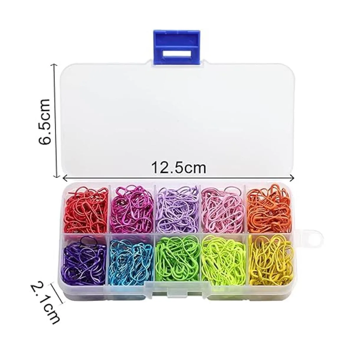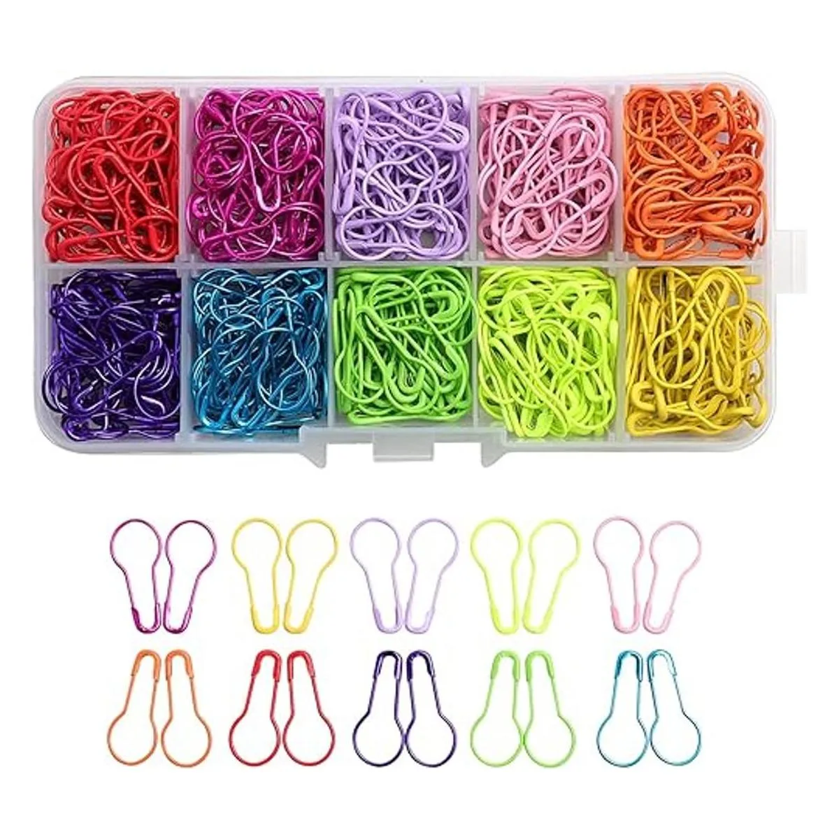 500 pines coloridos en forma de pera de seguridad, con caja de almacenamiento para etiquetas de ropa, manualidades, costura