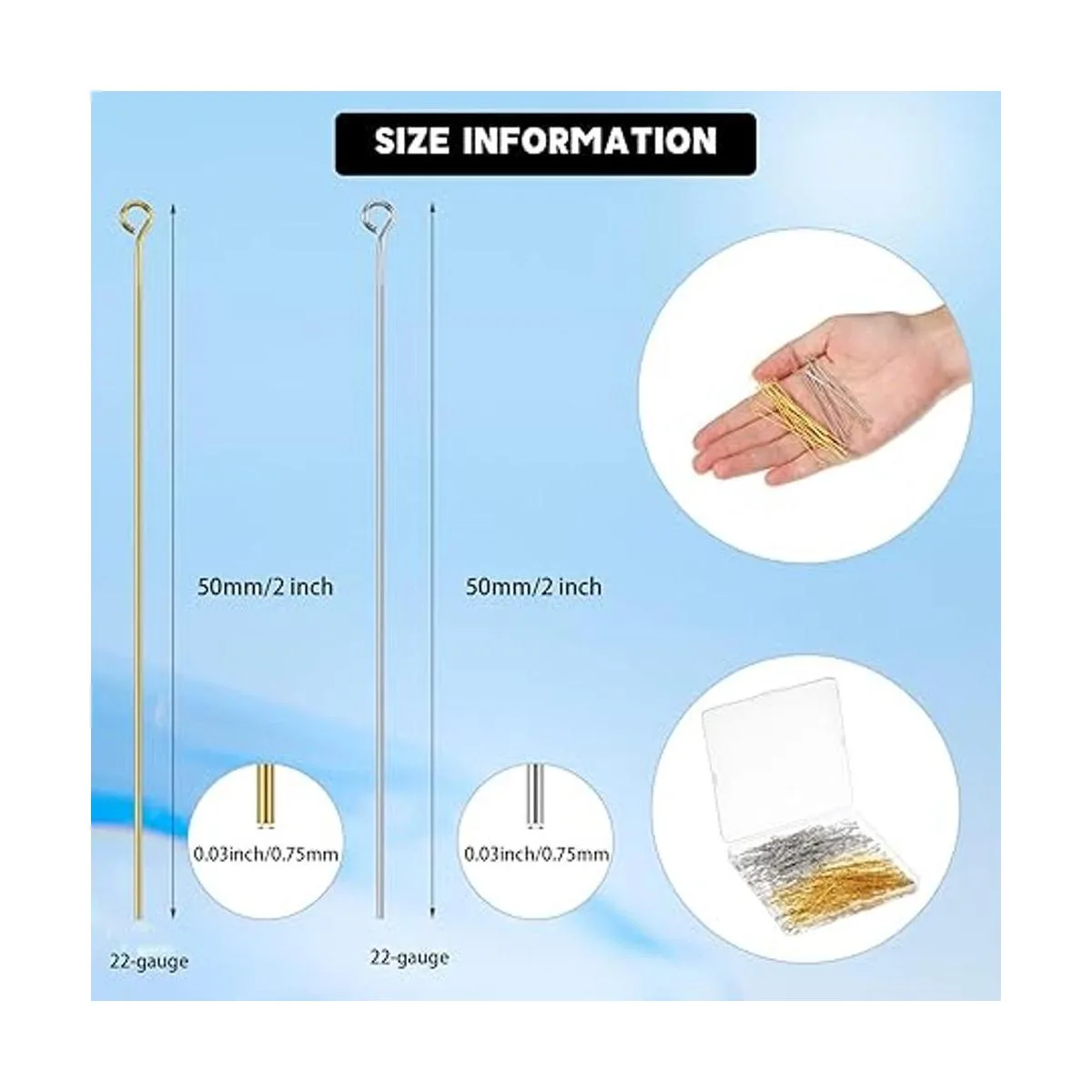 500 pines de ojo de 1.969 in para hacer joyas, cabezas de alfiler, joyería para hacer joyas, pasadores de cabeza de bola para manualidades, aretes, pulseras, accesorios para hacer suministros oro, plateado