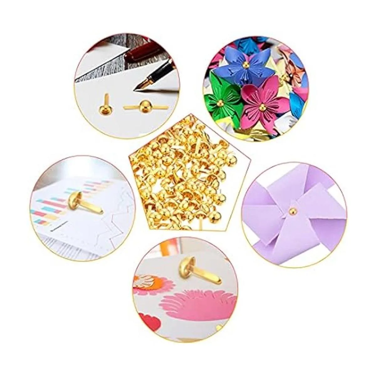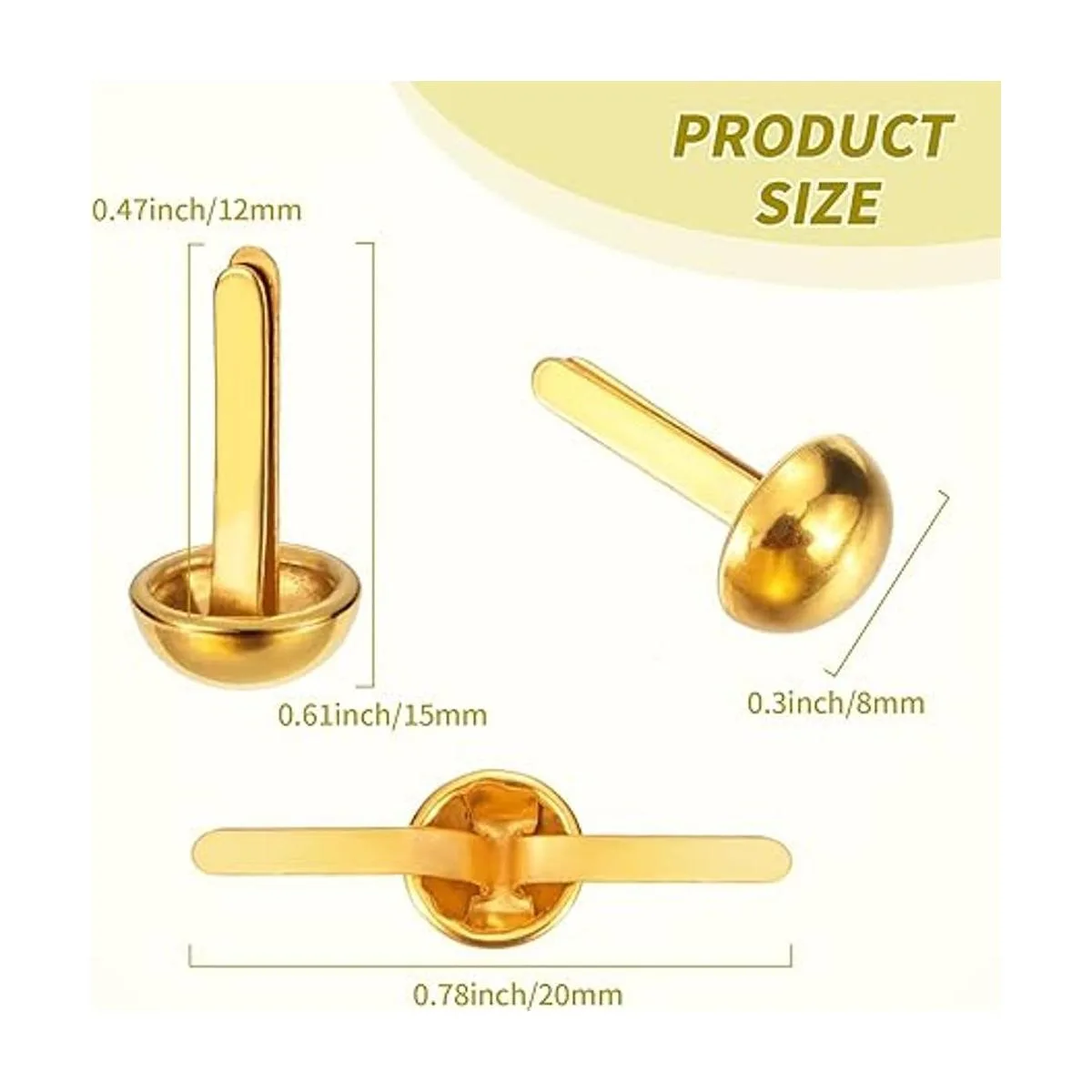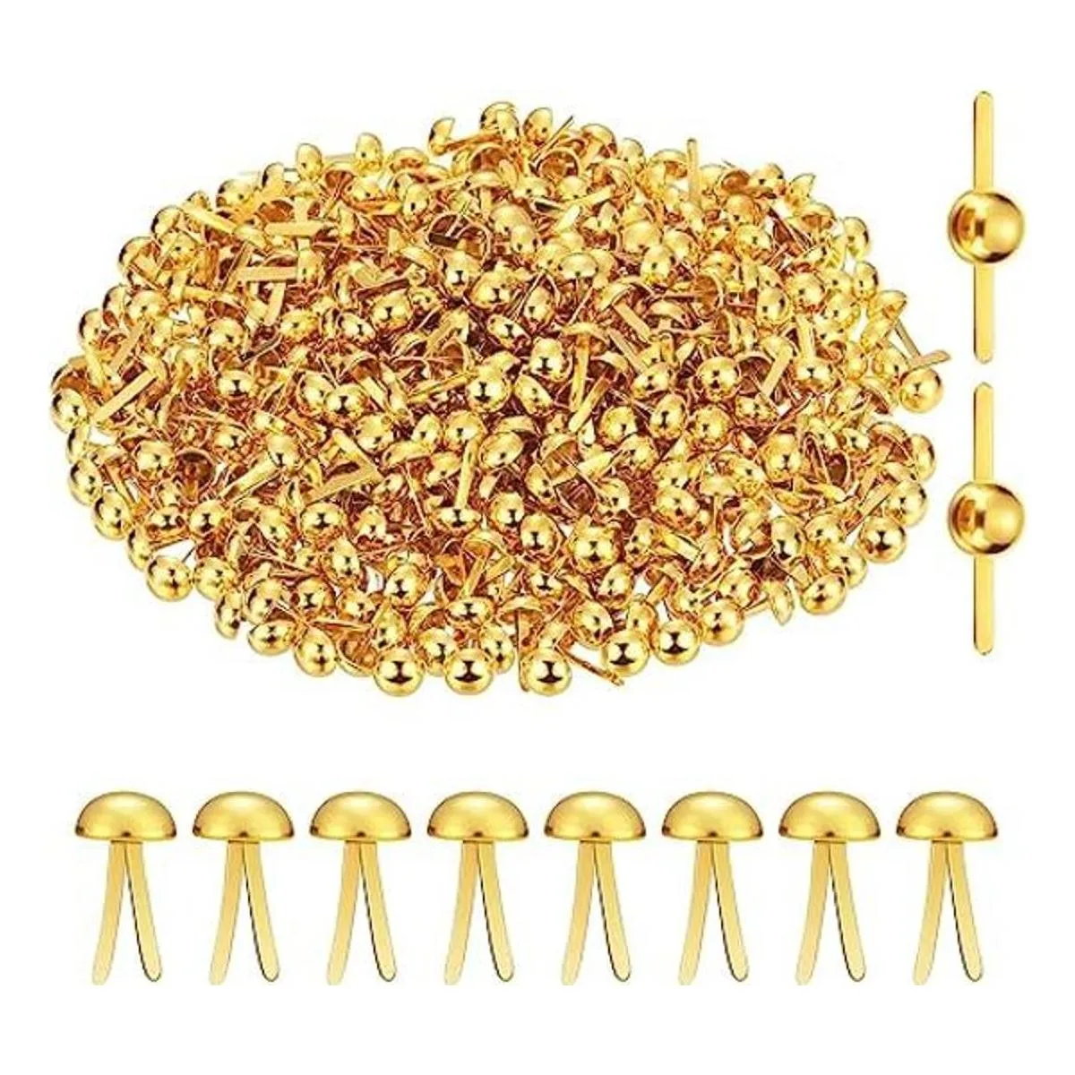 500 sujetadores de latón de papel, sujetadores redondos para niños, manualidades, manualidades, proyectos escolares, álbumes de recortes, suministros de bricolaje dorado, 0.3 x 0.8 pulgadas