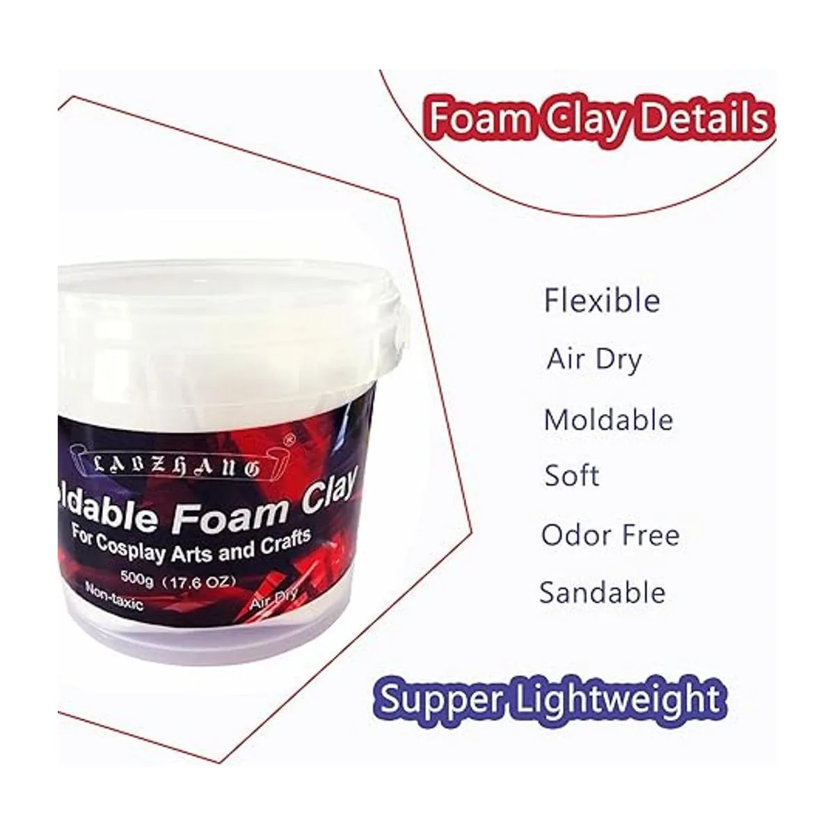 Good Adhesion and Air Dry: Use foam clay to easily attach it to other surface types, such as foam, wood, tile, fabric, ceramics, etc.The clay foam needs 2448 hours to dry, depending on the thickness and volume. When foam clay has a moist feel, you can make it up at random and finish your crafts. After air drying, you can also carve and cut with a sharp knife to give full play to your cosplay artistic creation.