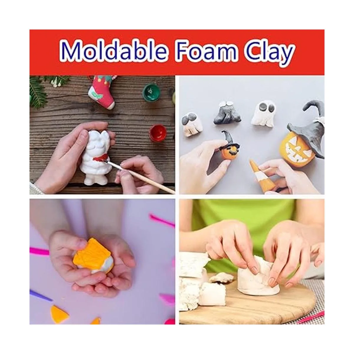 Stays Flexible: In wet conditions, the moldable foam clay can adhere well to itself and EVA foam, but also can use hot glue/cement to obtain better adhesion. When foam clay dries, it still maintains a certain degree of flexibility, making it more ideal than paper clay or model clay.