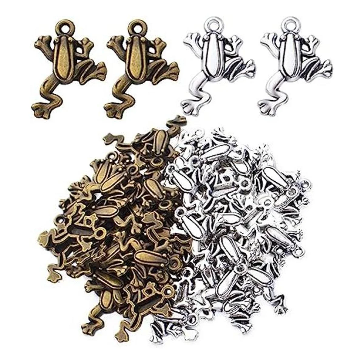 El paquete incluye: 50 abalorios de rana en total, 2 colores plata antigua y bronce antiguo, 25 unidades de cada color. Puedes utilizar estos abalorios para crear joyas especiales.