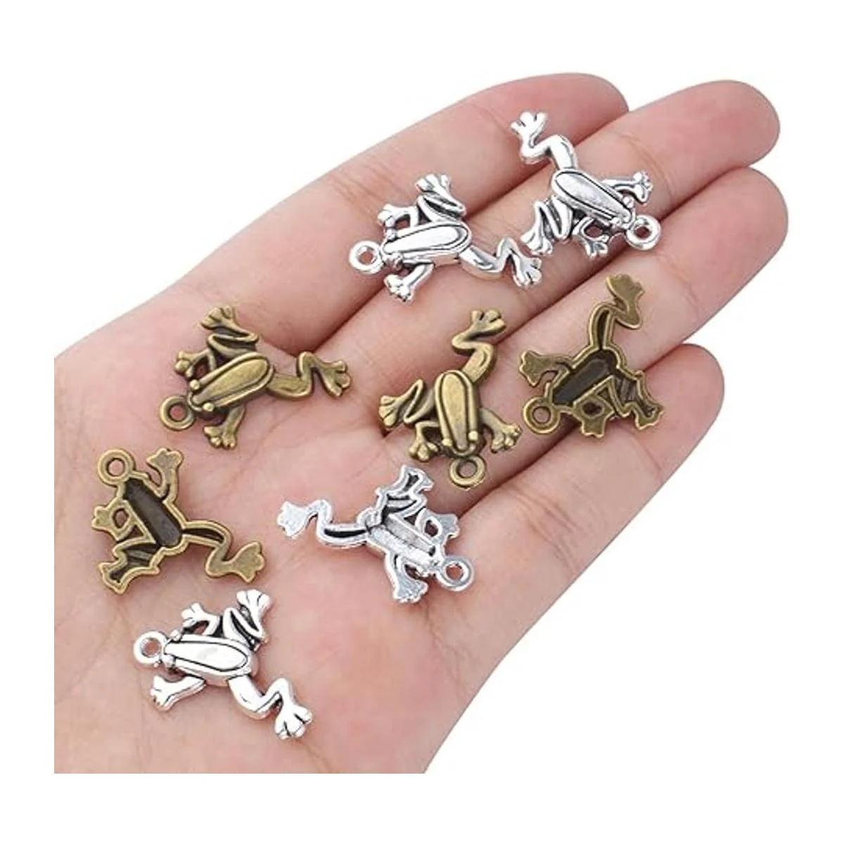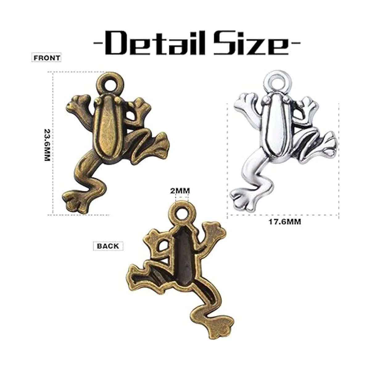 50pcs rana colgante encanto animal Charms colgantes rana abalorios abalorios artesanía suministros para joyería DIY pendientes collar pulsera fabricación accesorio, plata antigua y bronce antiguo