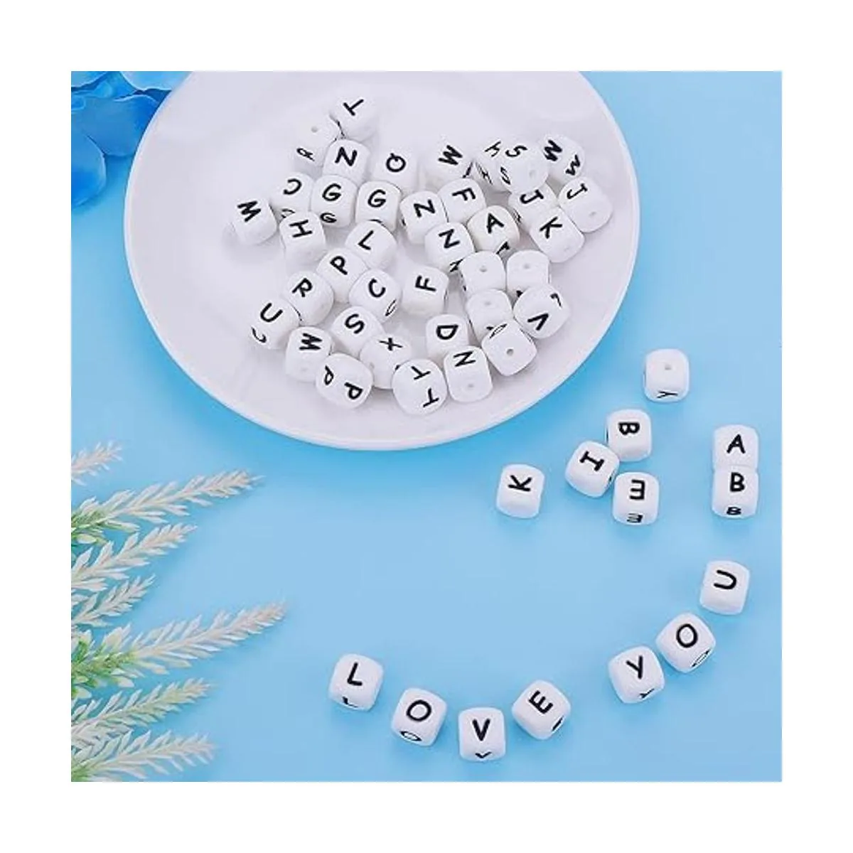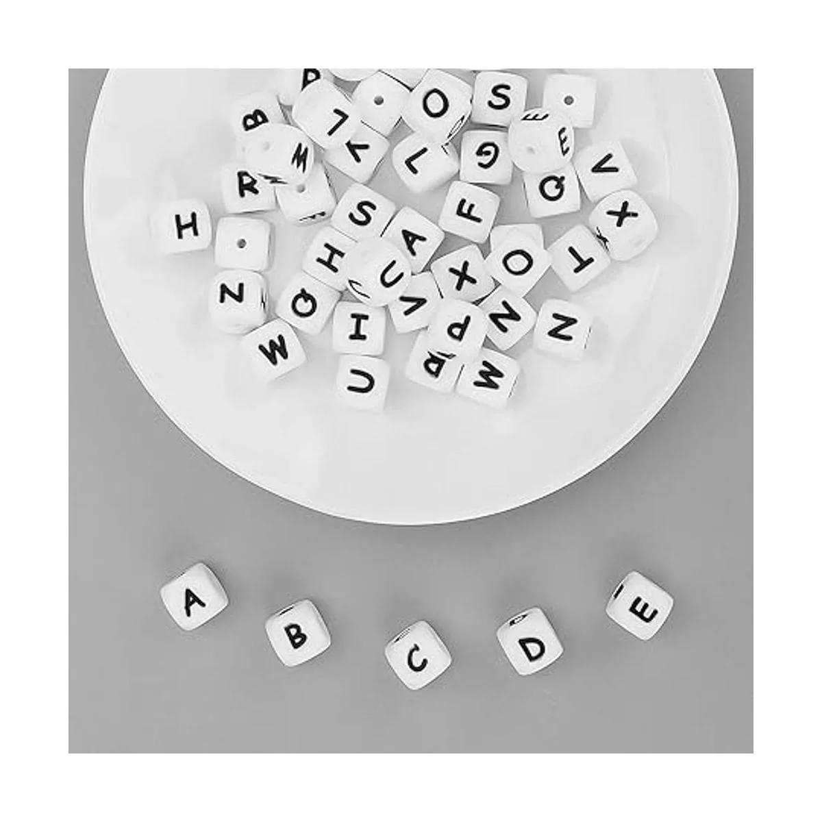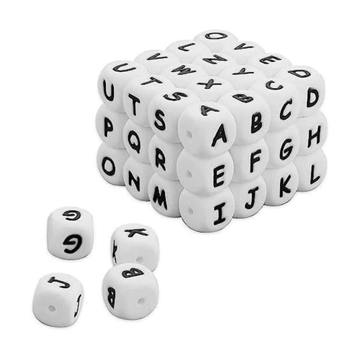 52 cuentas de letras de silicona, cuentas cuadradas del alfabeto de 0.472 in, cuentas cuadradas para hacer pulseras, collares, joyas