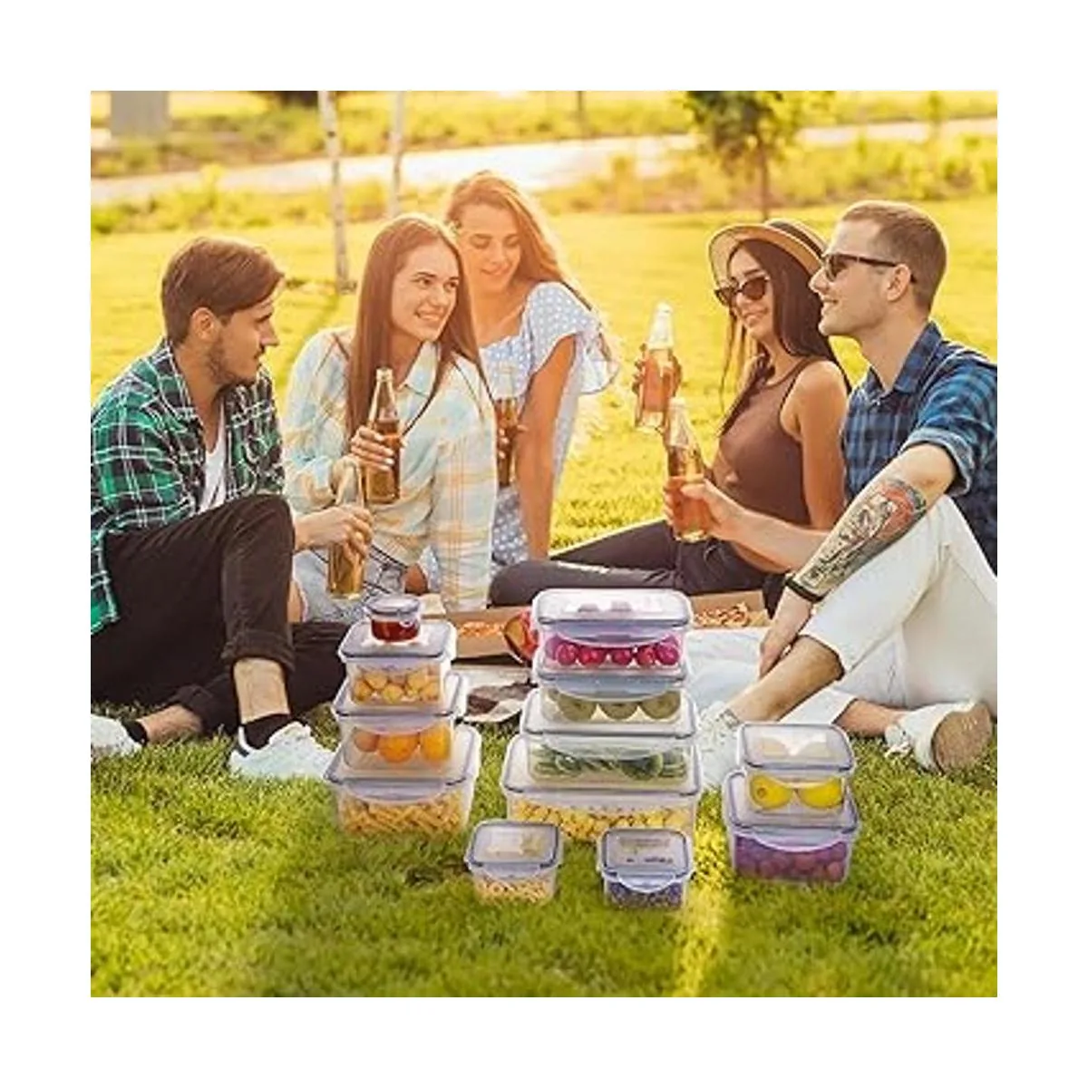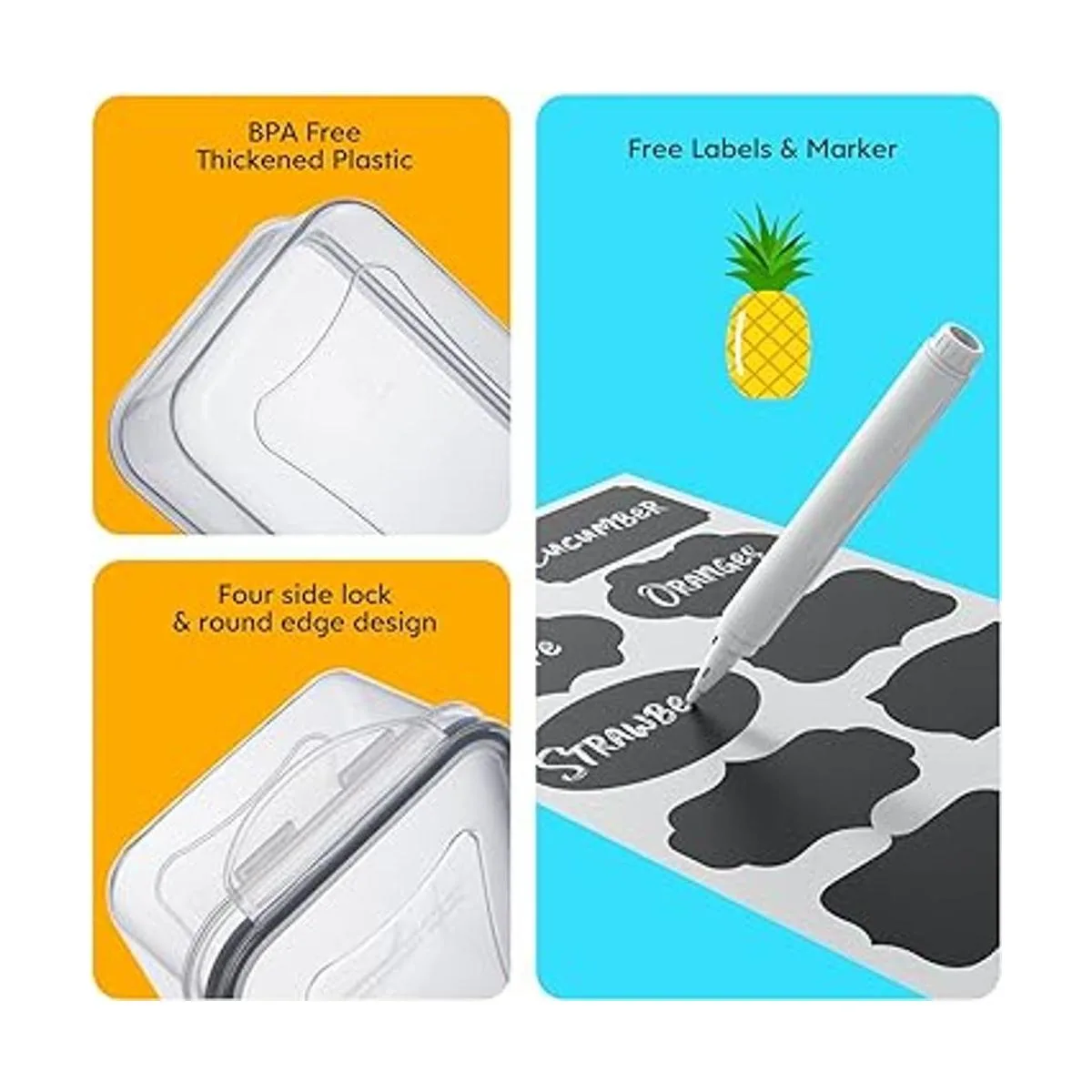 Multifunctional The Extra large largecontainers can be used to store fruits, vegetables, salads, grains, meat, meal, pasta, soup, candies, etc., and the small containers can be used to store salt, sugar, ketchup, hot sauce, pepper sauce and other seasonings. Meet all the familys food storage needs. Also suitable for outdoor, picnic, barbecue and other scenes.